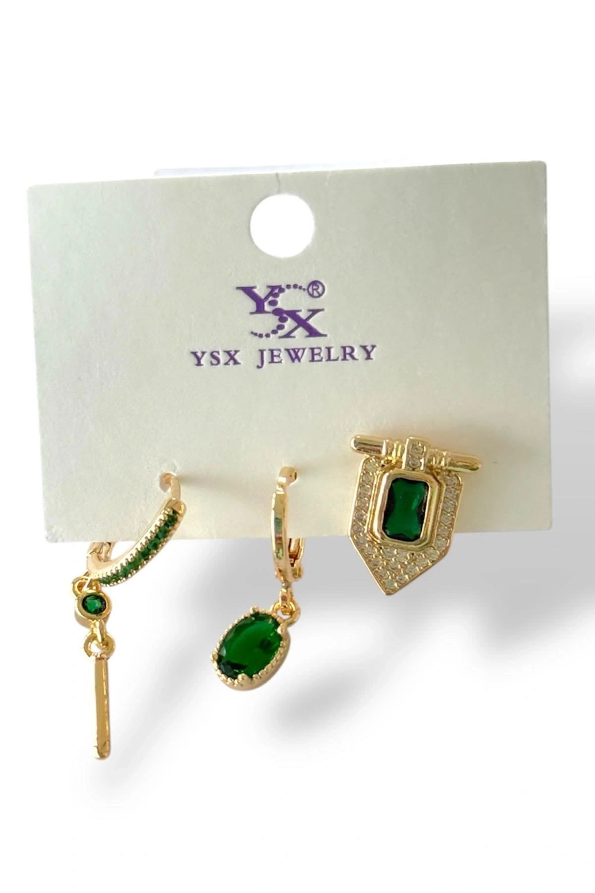 Altın Renk Taş Detaylı VİP 3'lü YSX Küpe Set