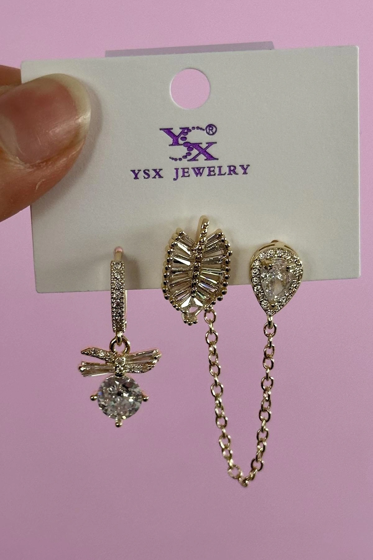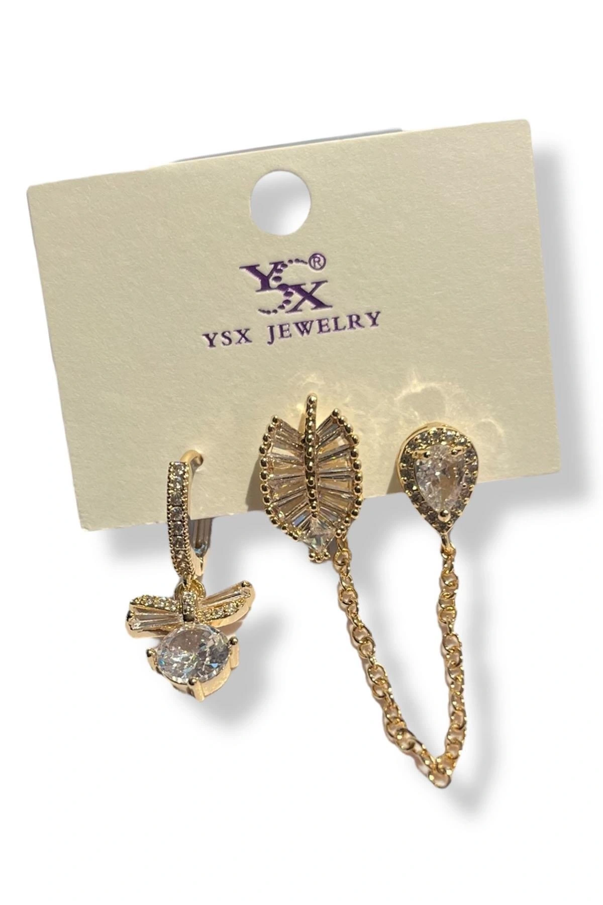 Altın Renk Taş Detaylı VİP 3'lü YSX Küpe Set