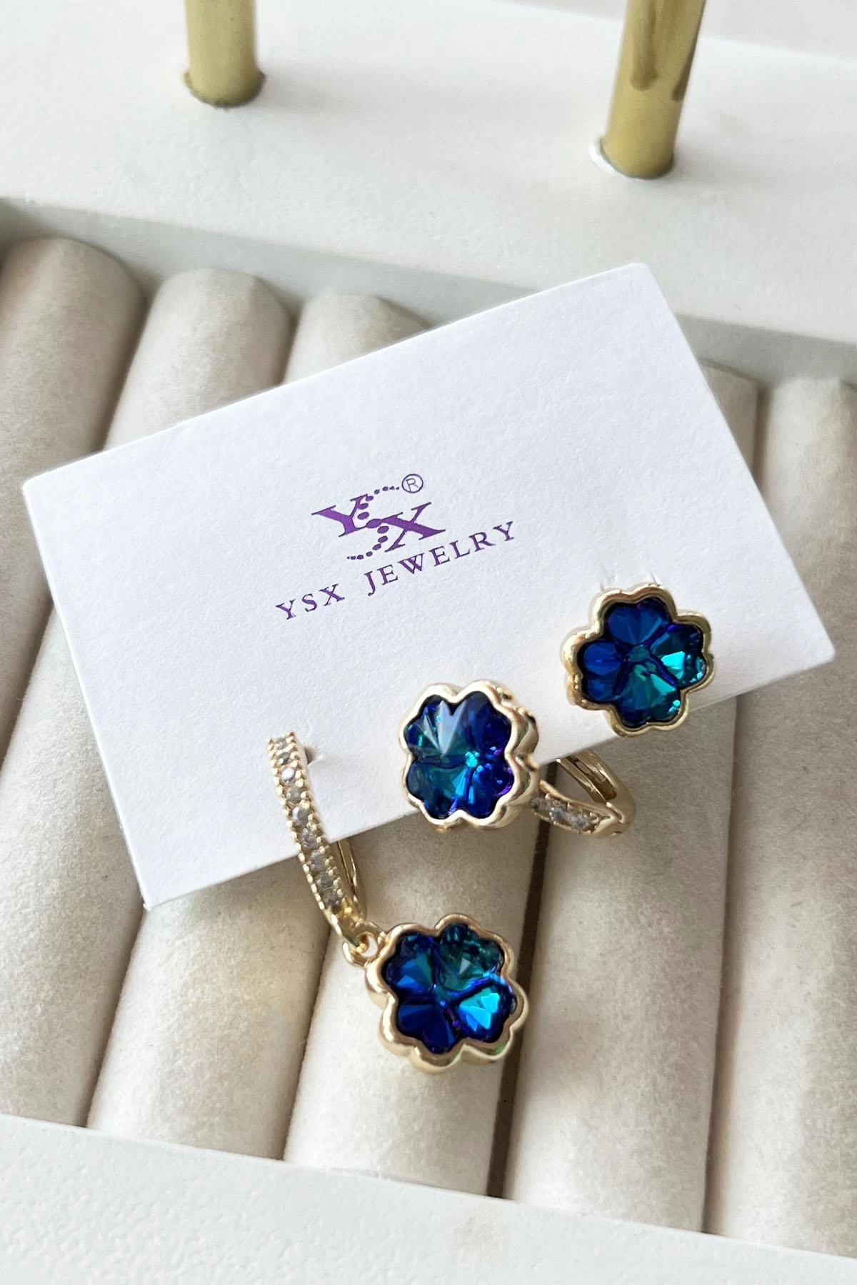 Altın Renk Taş Detaylı VİP 3'lü YSX Küpe Set