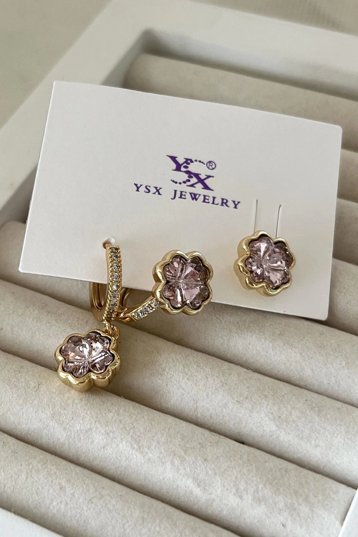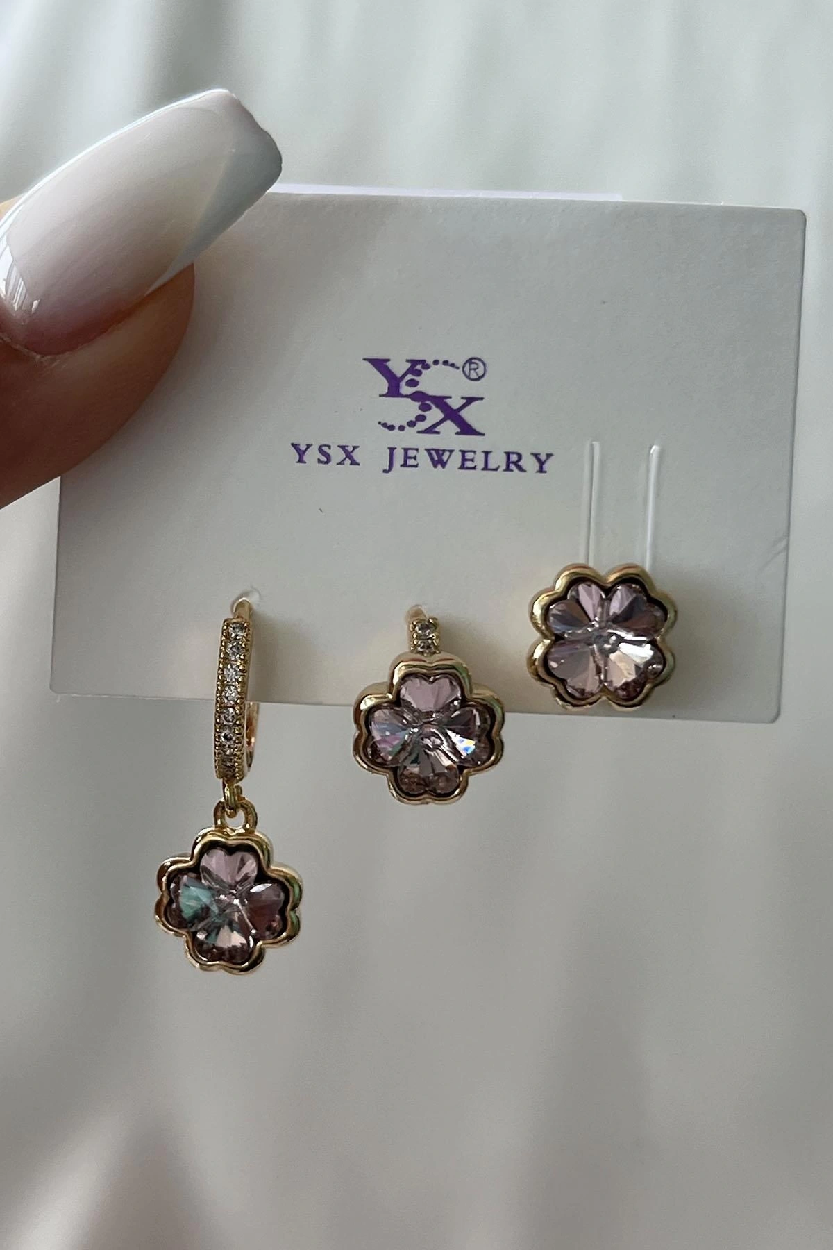 Altın Renk Taş Detaylı VİP 3'lü YSX Küpe Set