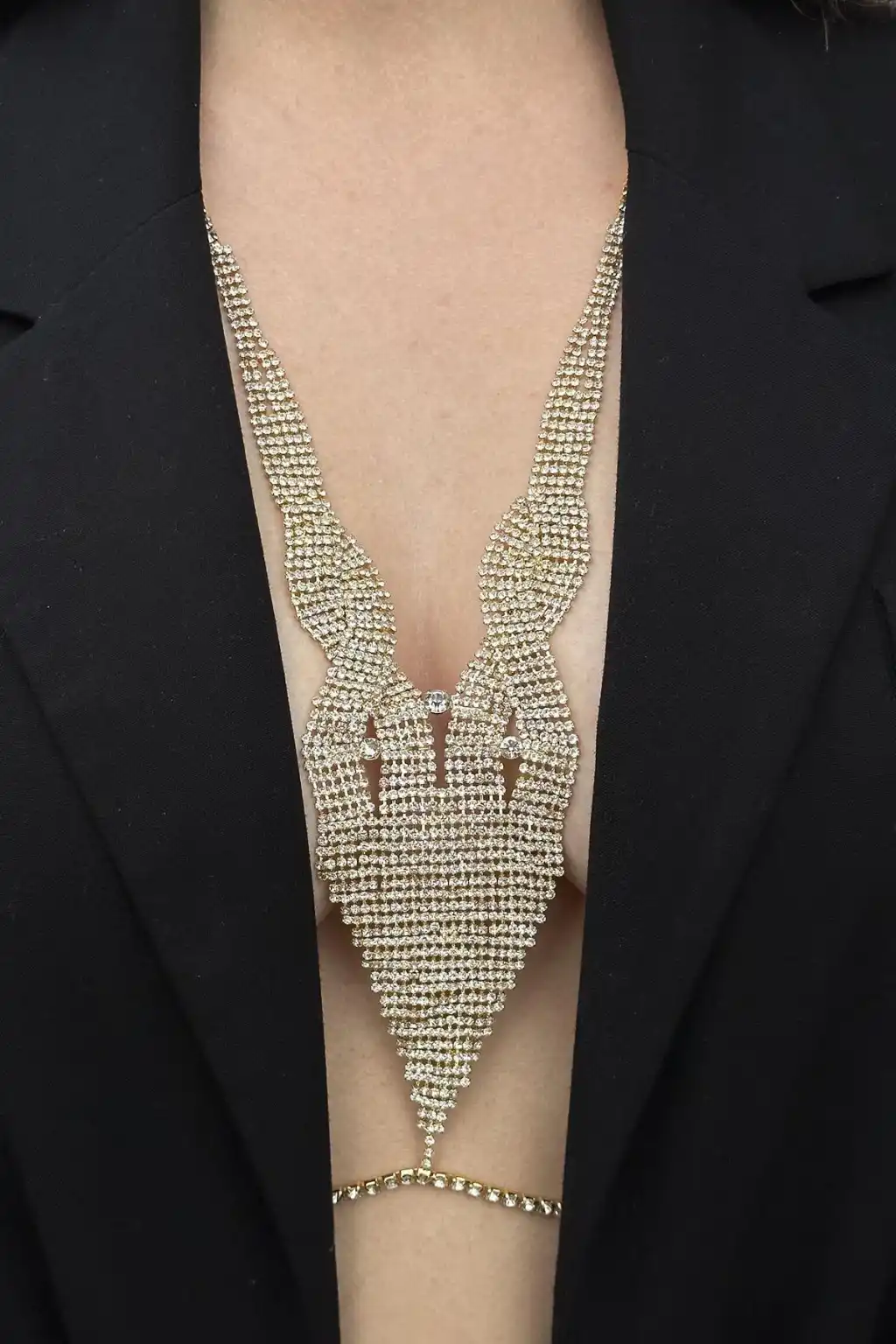 Altın Renk Taş Detaylı Tasarım Vücut Aksesuar