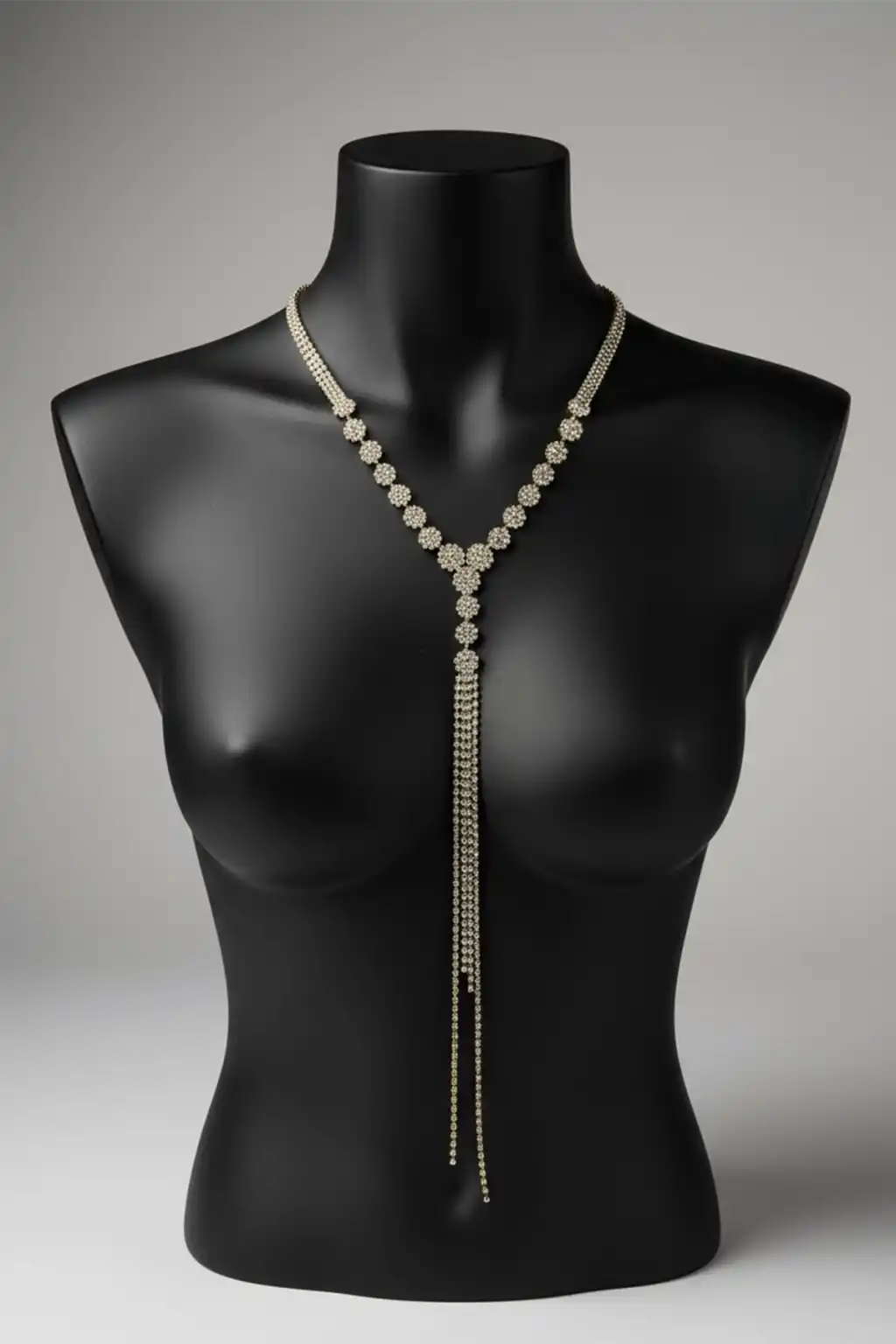 Gümüş Renk Taş Detaylı Tasarım Bel Zinciri/Vücut Aksesuar