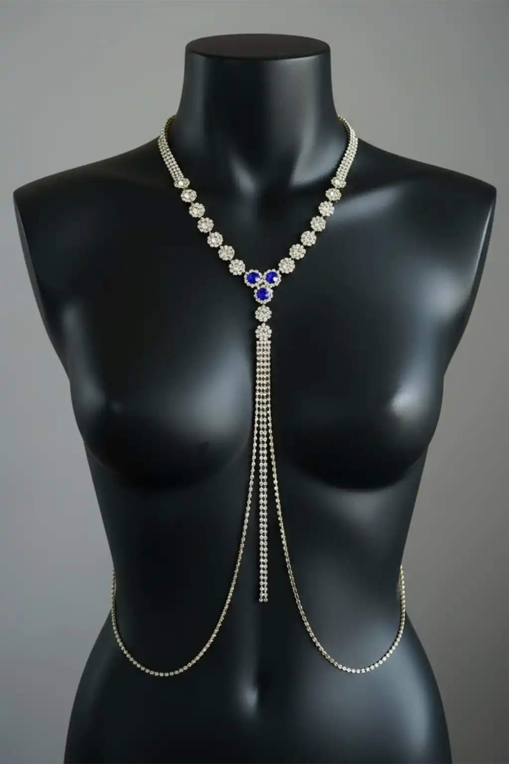 Gümüş Renk Taş Detaylı Tasarım Bel Zinciri/Vücut Aksesuar