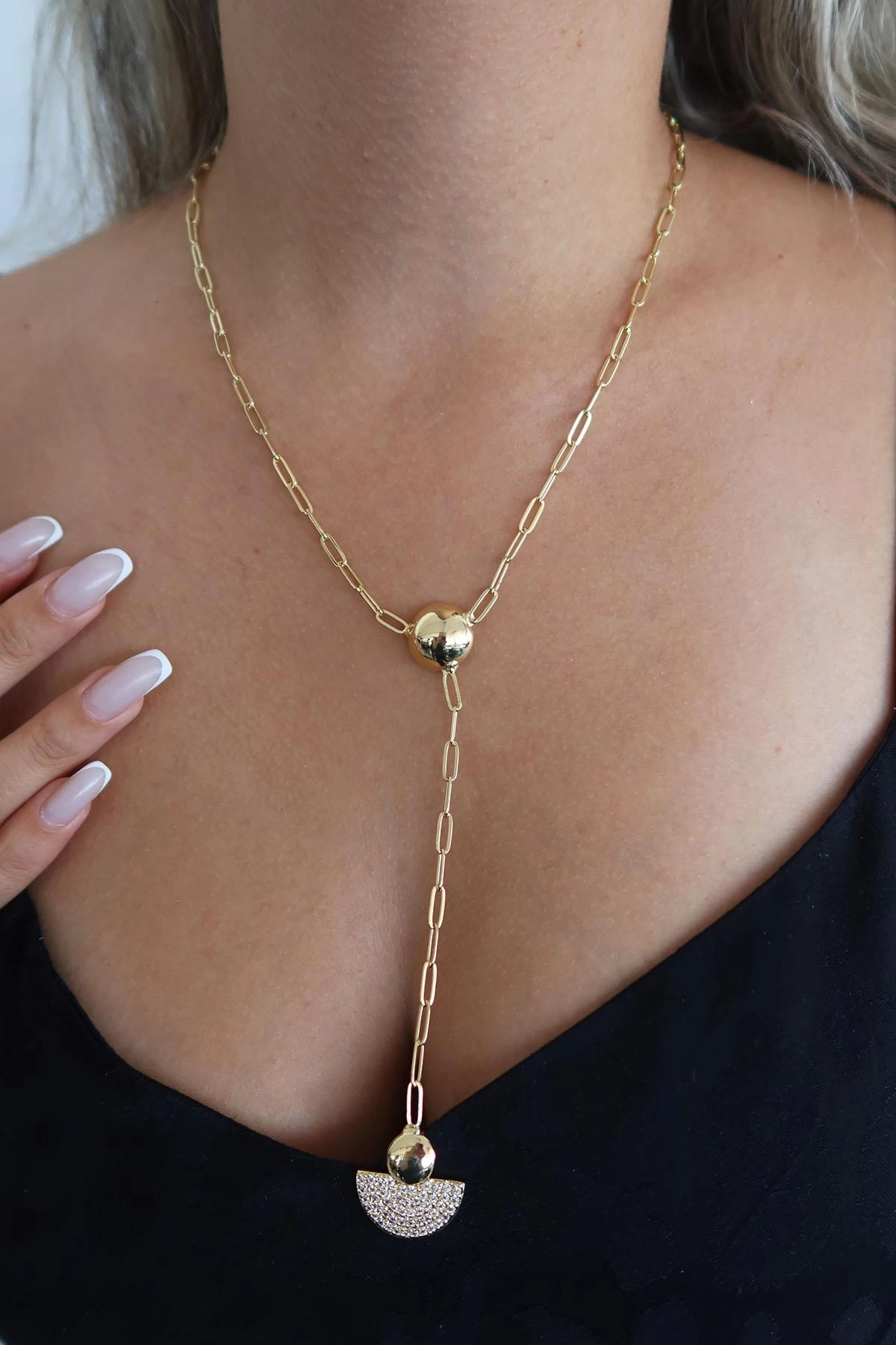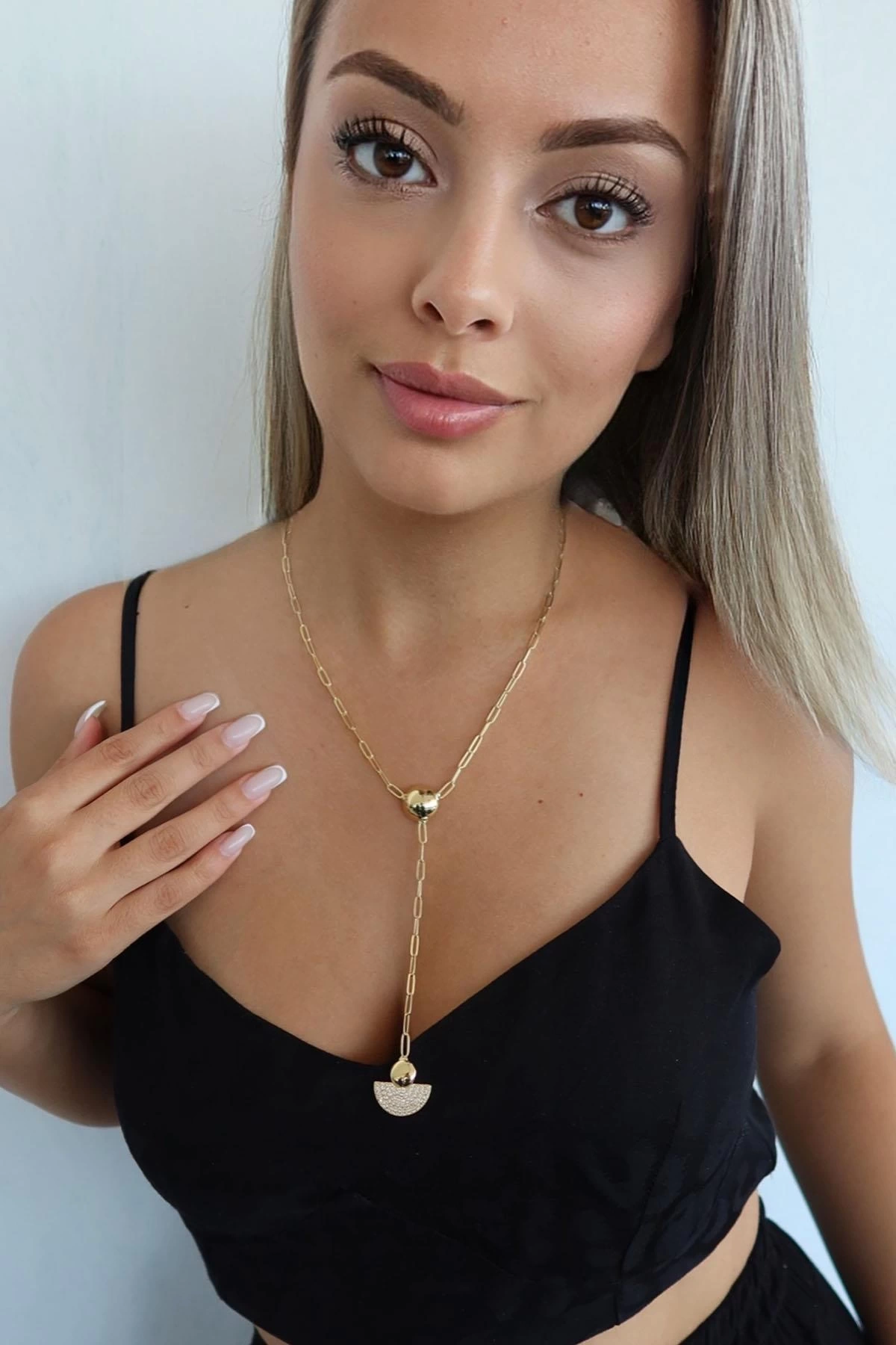 Altın Renk Taş Detaylı Y Kolye