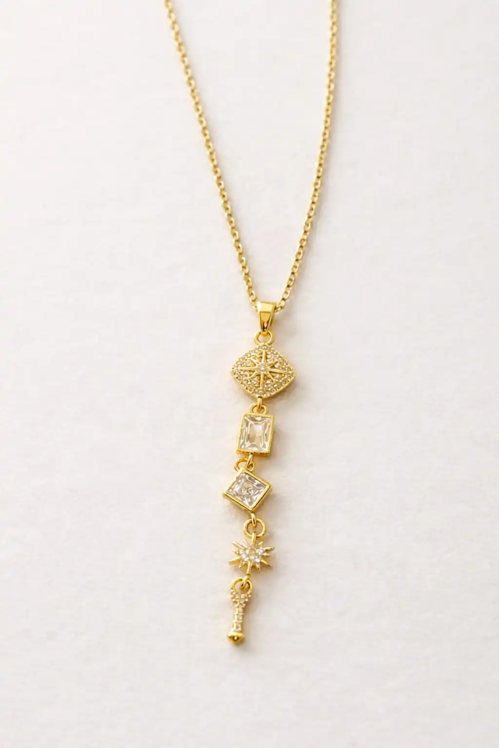 Altın Renk Yelpaze Figürlü Çelik Kolye