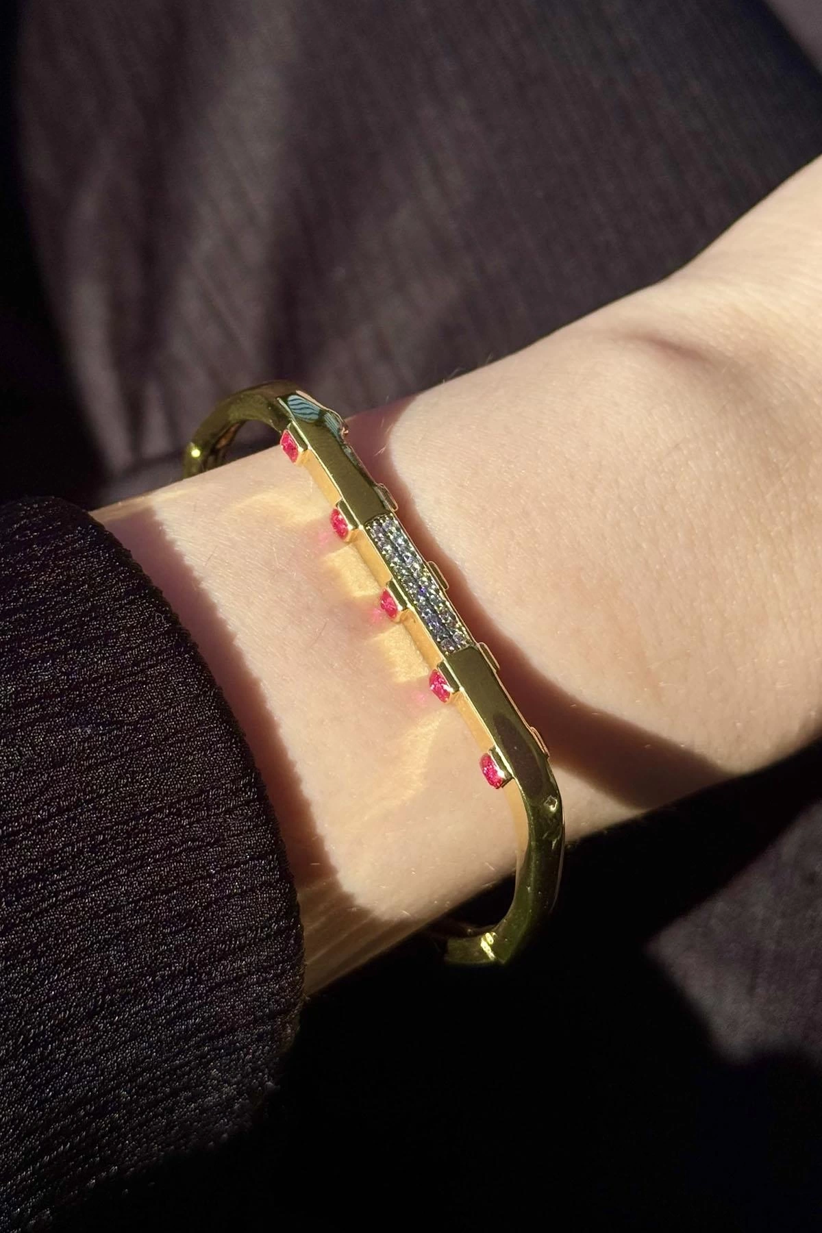 Altın Renk Taş Detaylı YSX Kelepçe Bileklik