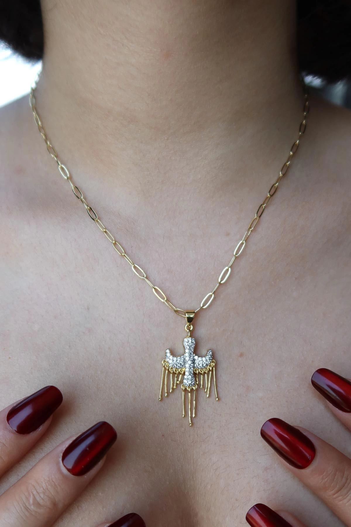 Altın Renk Taş Detaylı YSX Kolye
