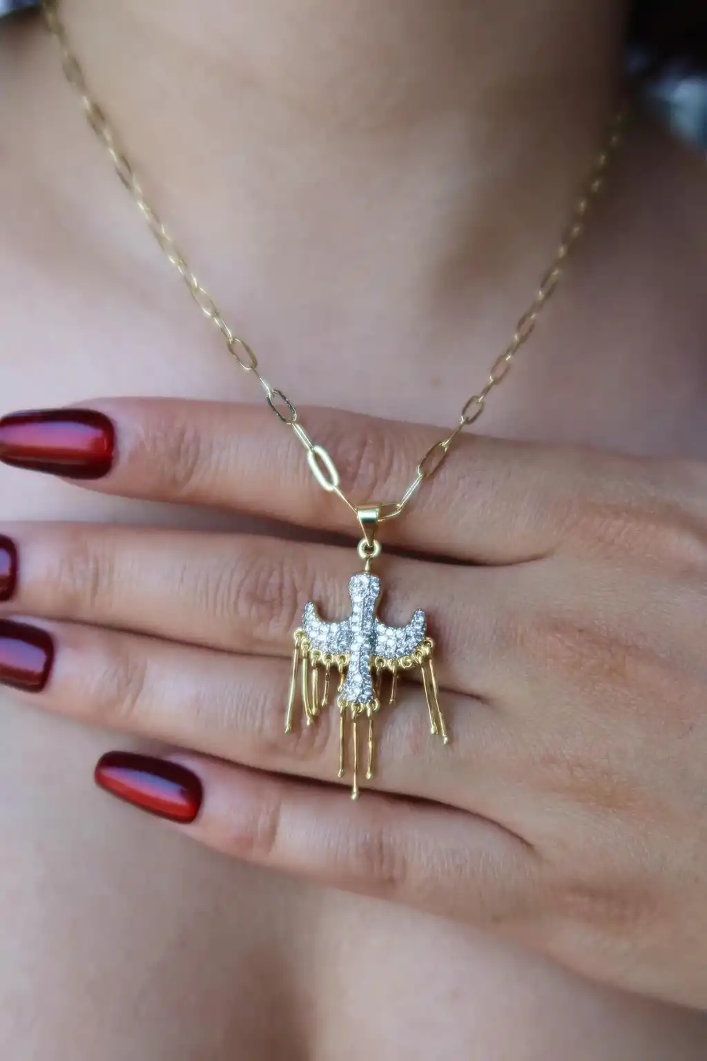 Altın Renk Taş Detaylı 14K Altın Kaplama VİP Kolye