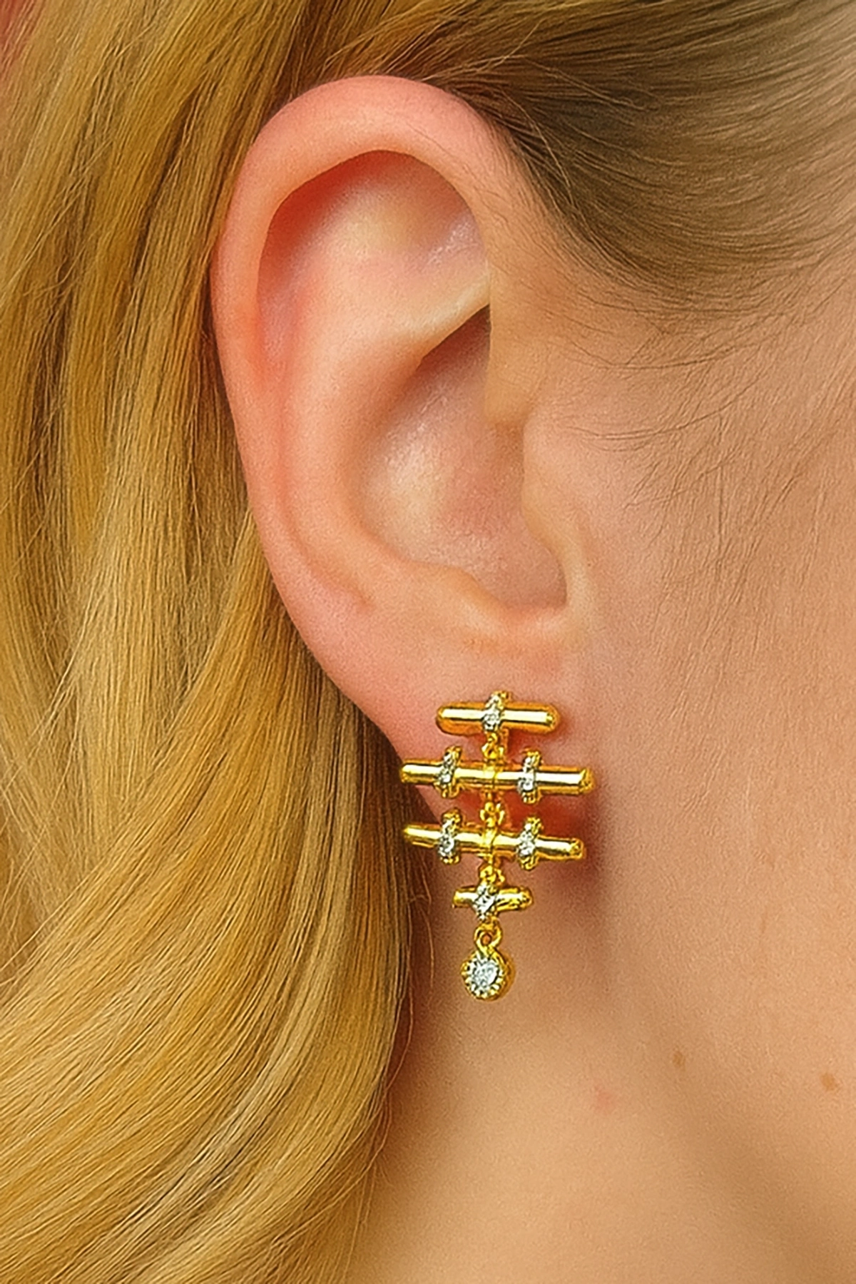Altın Renk Taş Detaylı YSX Küpe (Çift)