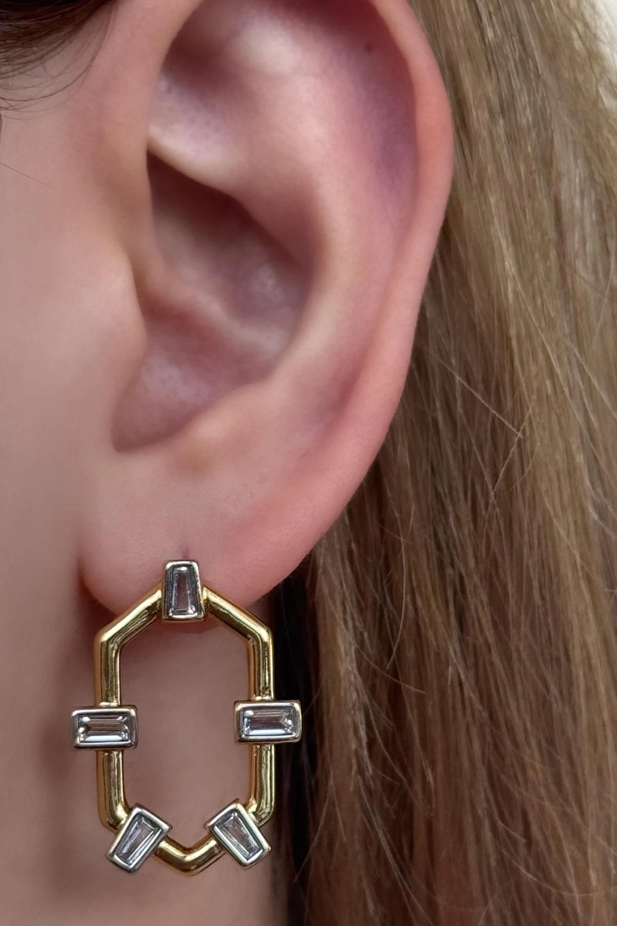 Altın Renk Taş Detaylı YSX Küpe (Çift)