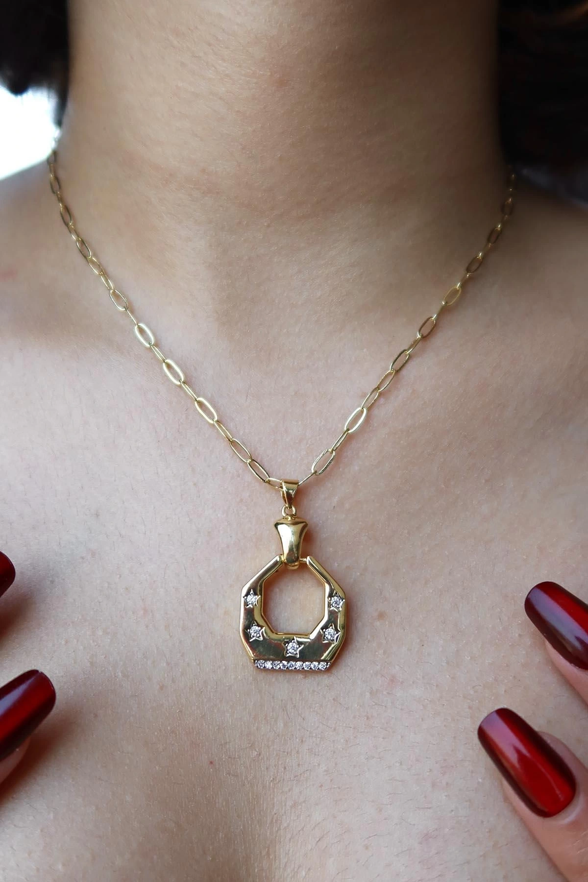 Altın Renk Taş Detaylı YSX Y Kolye
