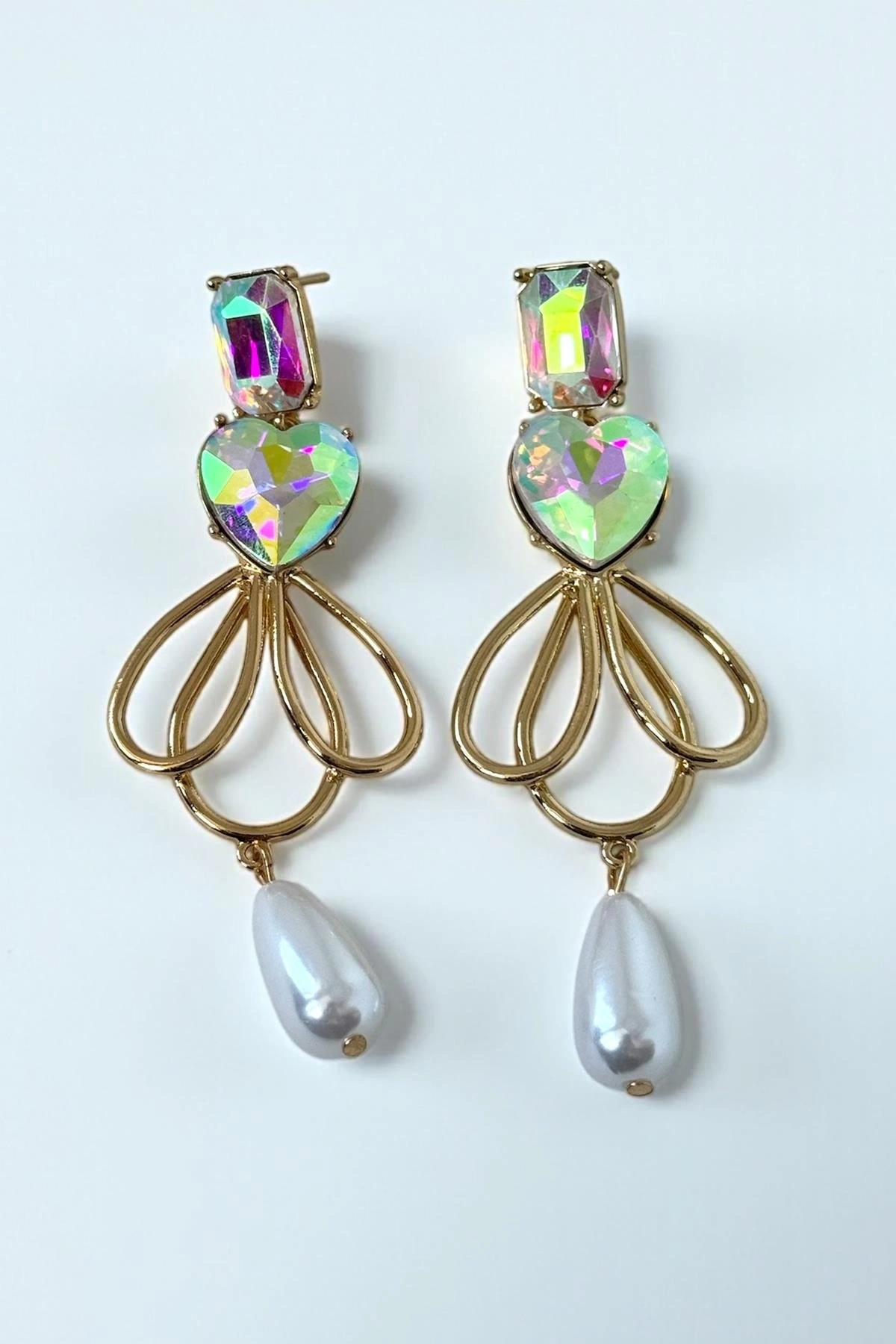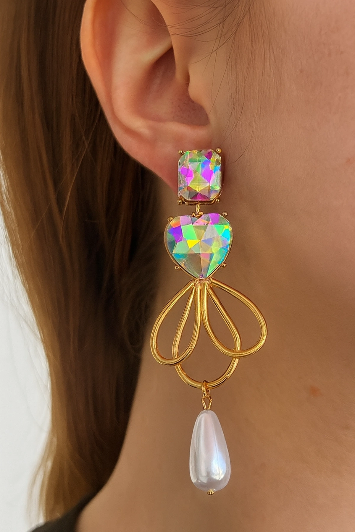 Altın Renk Taş Ve İnci Detaylı Tasarım Küpe (Çift)