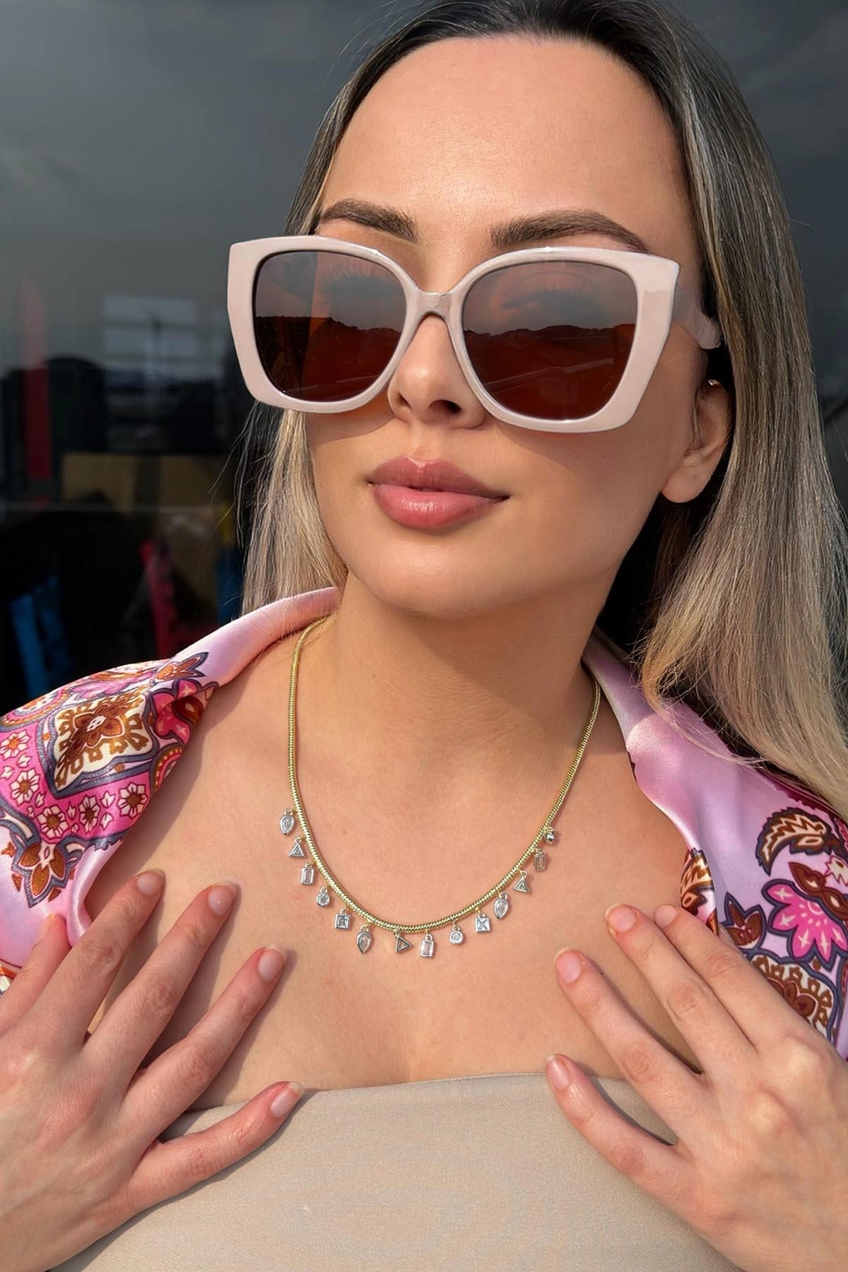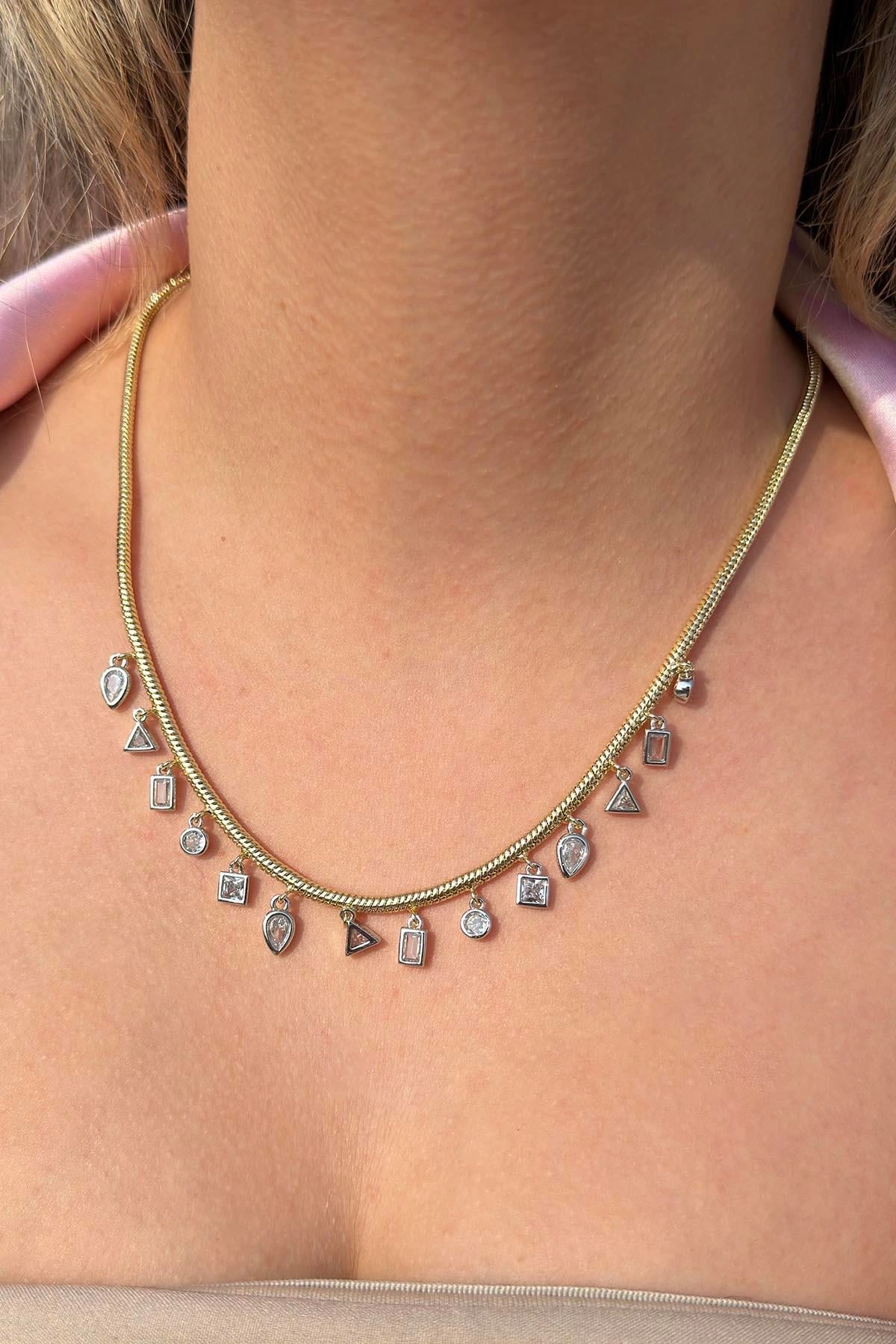 Altın Renk Taşlı 14K Altın Kaplama Kolye
