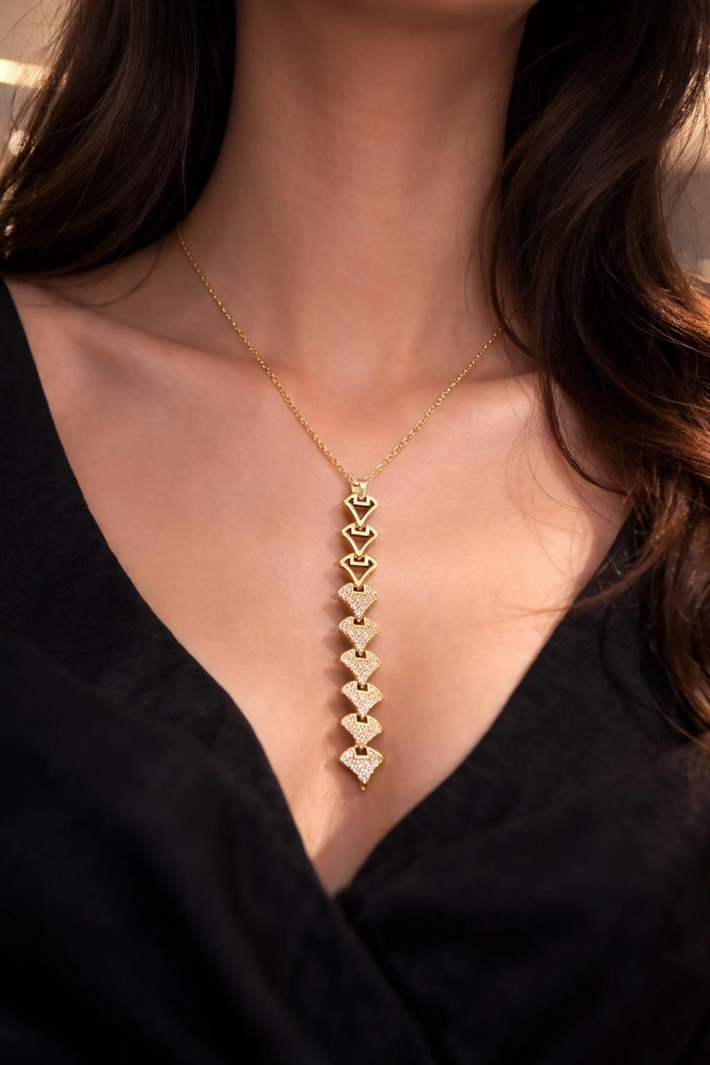 Altın Renk Taş Detaylı Y Kolye