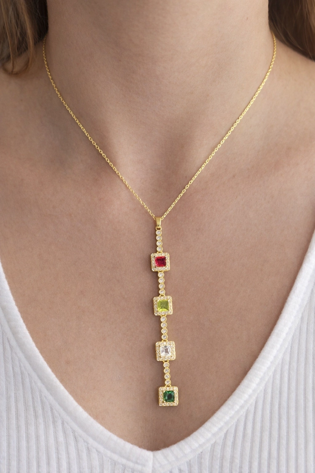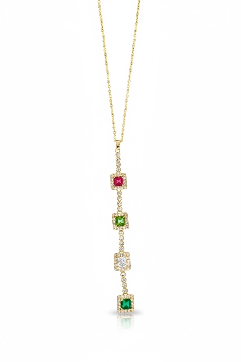 Altın Renk Taşlı 14K Altın Kaplama Y Kolye