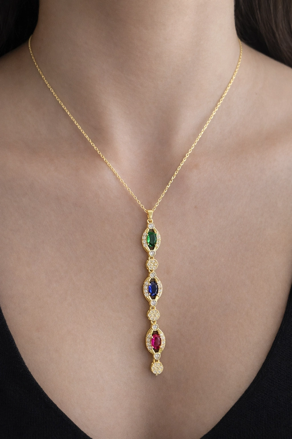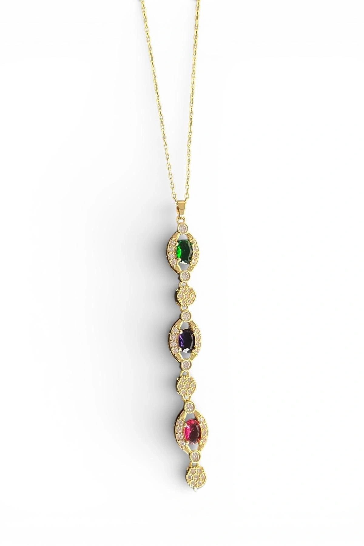 Altın Renk Taşlı 14K Altın Kaplama Y Kolye