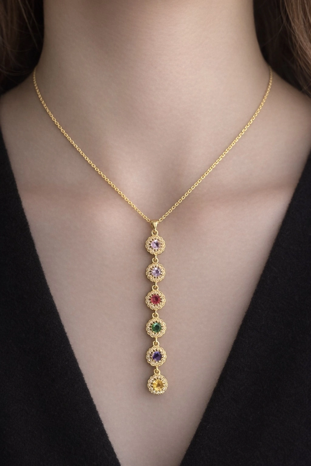 Altın Renk Taşlı 14K Altın Kaplama Y Kolye