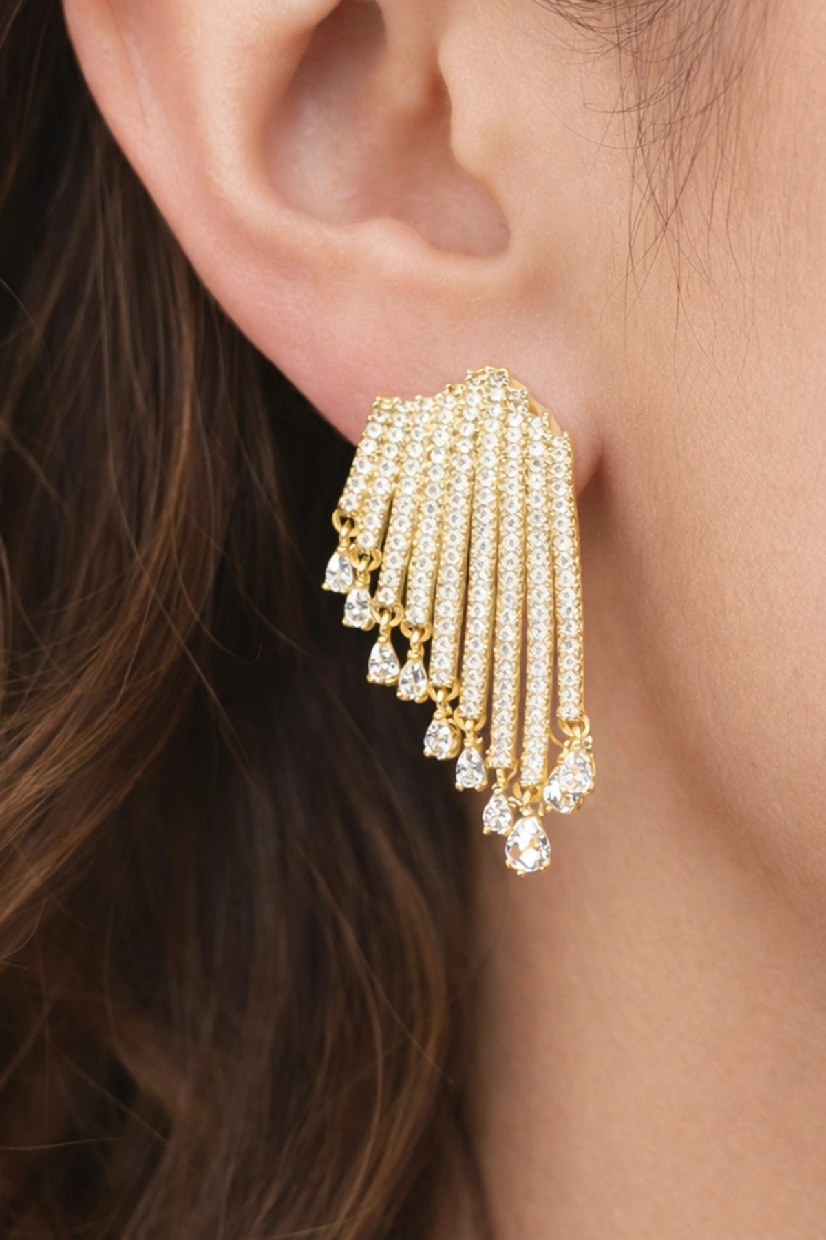 Altın Renk Taşlı Abiye Küpe (Çift)