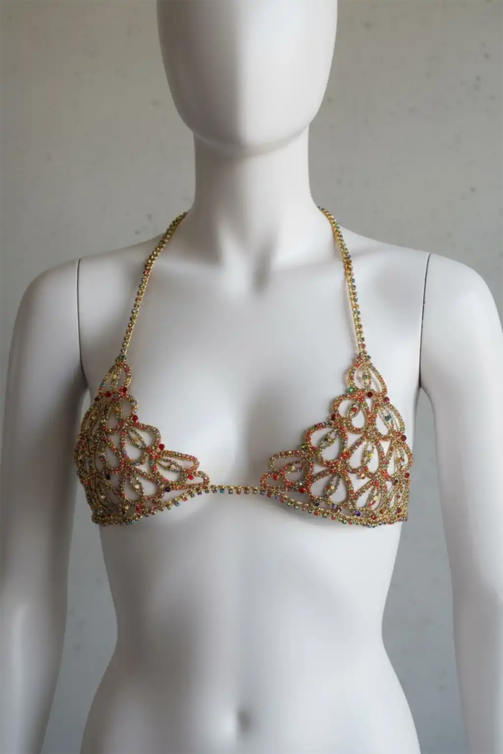 Altın Renk Taşlı Bikini Üstü /Bralet /Vücut Aksesuarı