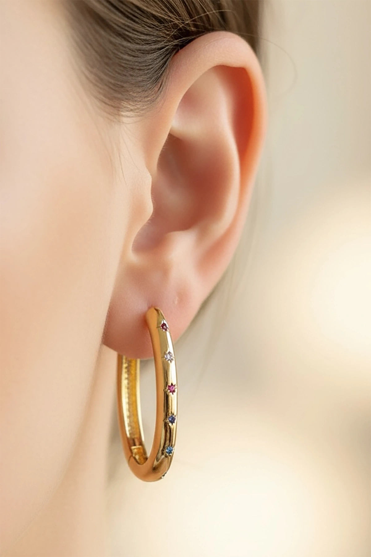Altın Renk Taşlı Tx Halka Küpe (Çift)