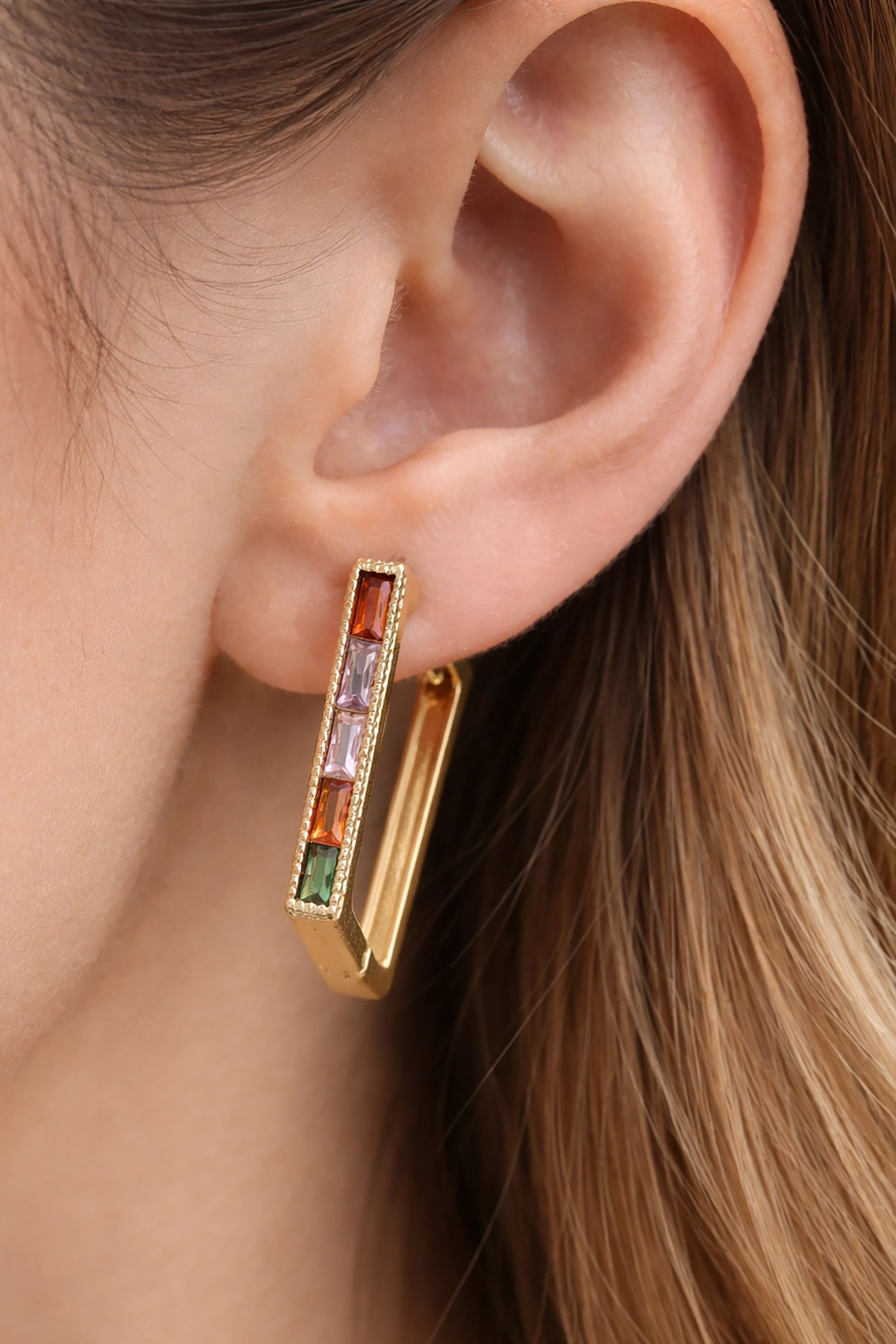 Altın Renk Taşlı Tx Küpe (Çift)