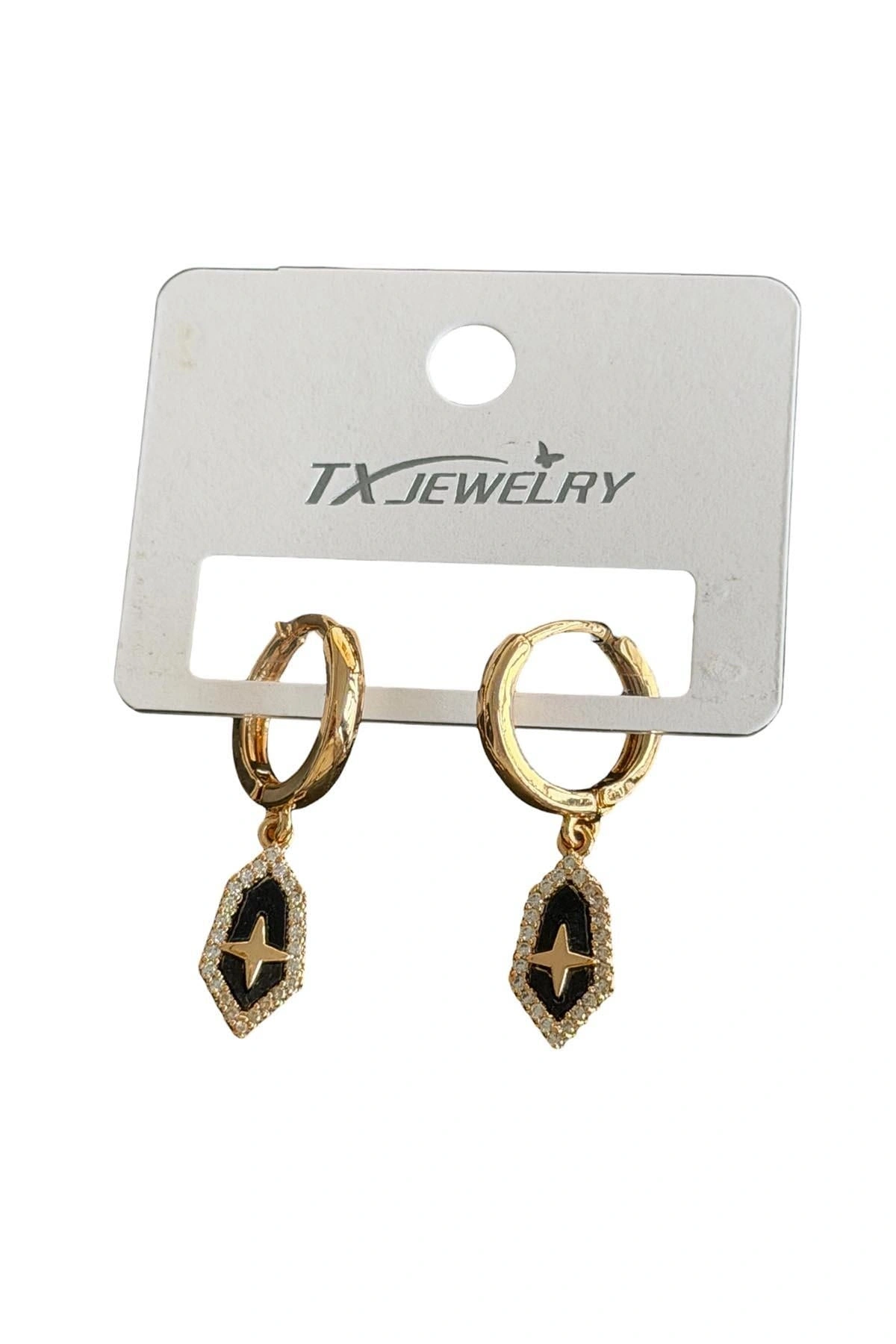 Altın Renk Taşlı Tx Küpe (Çift)
