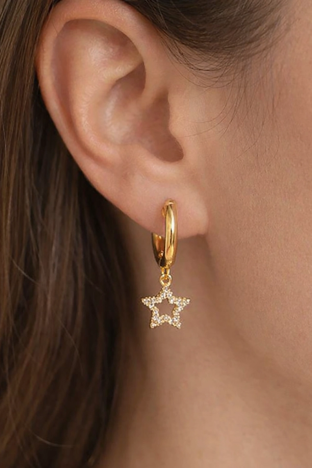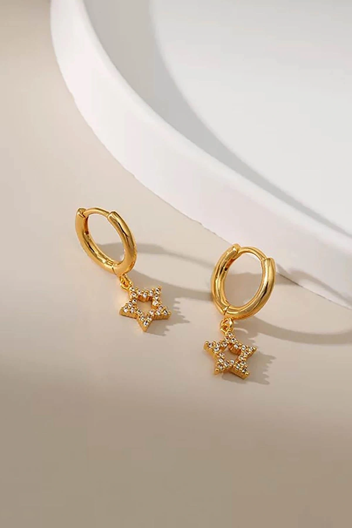 Altın Renk Taşlı Yıldız Figürlü Halka Tx Küpe (Çift)