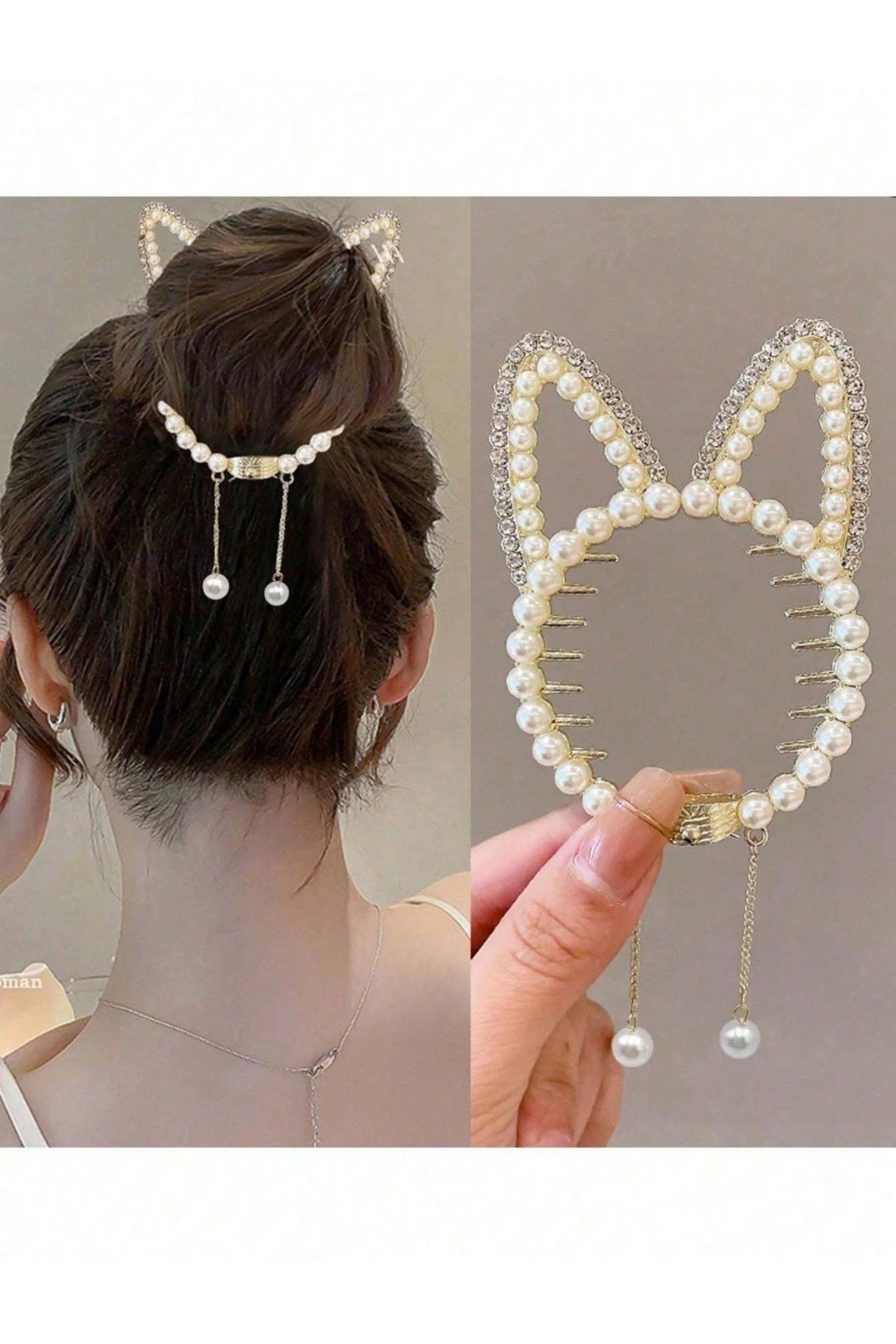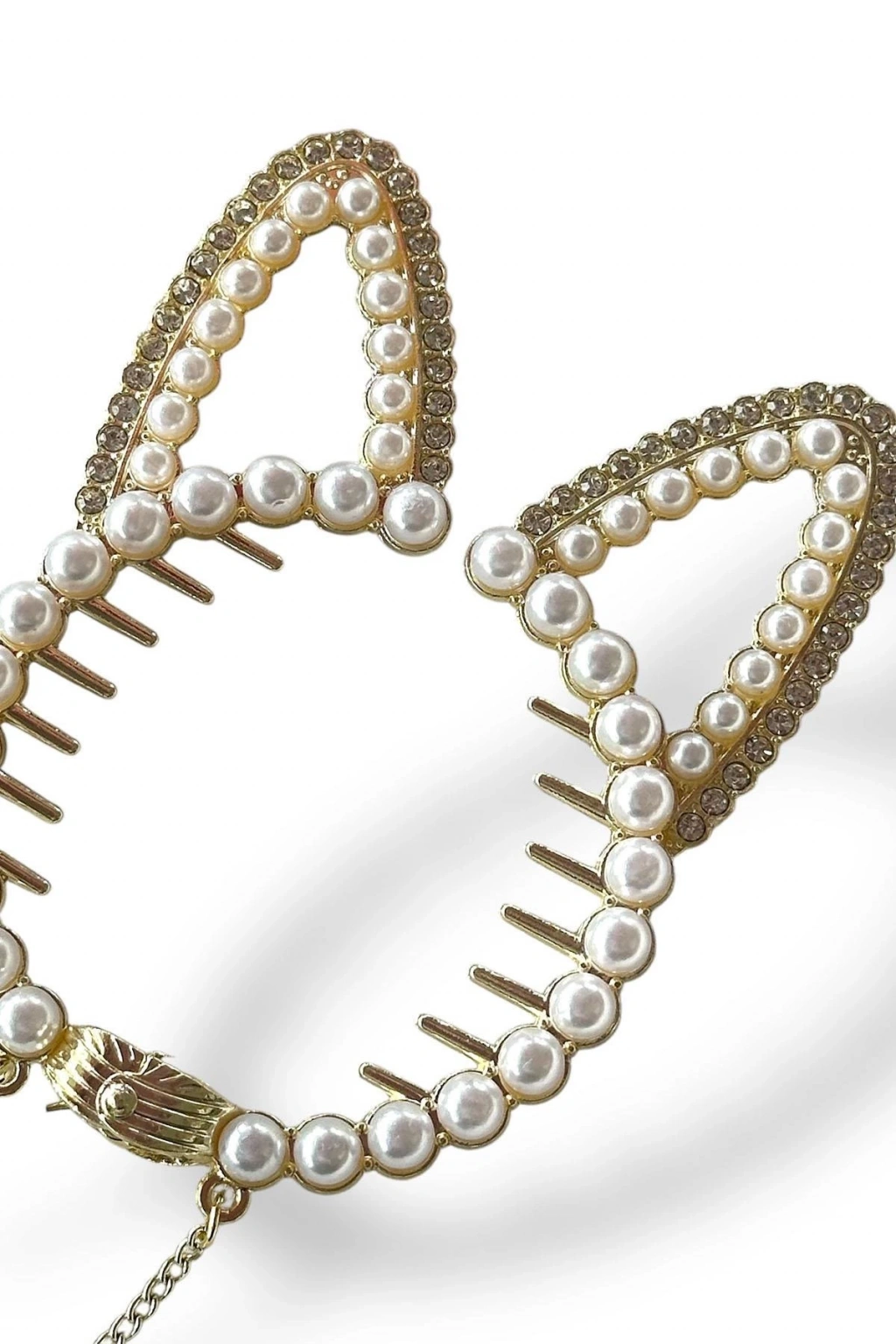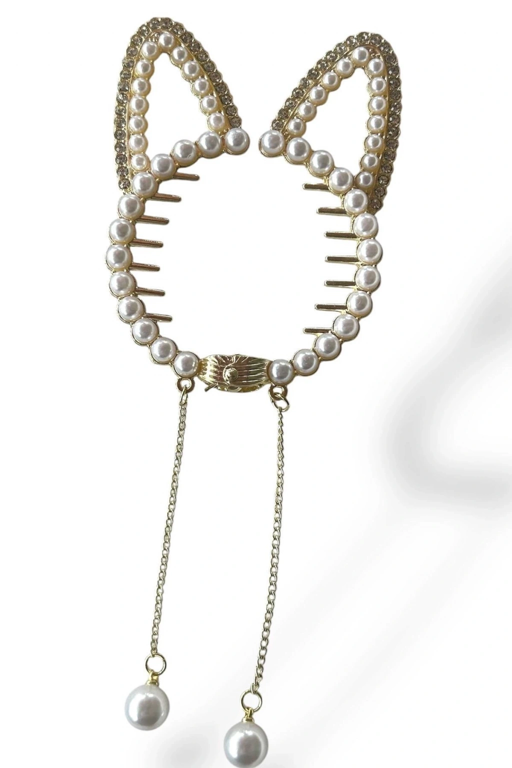 Altın Renk Tavşan Figürlü İnci Detaylı Sallantılı Topuz Tokası