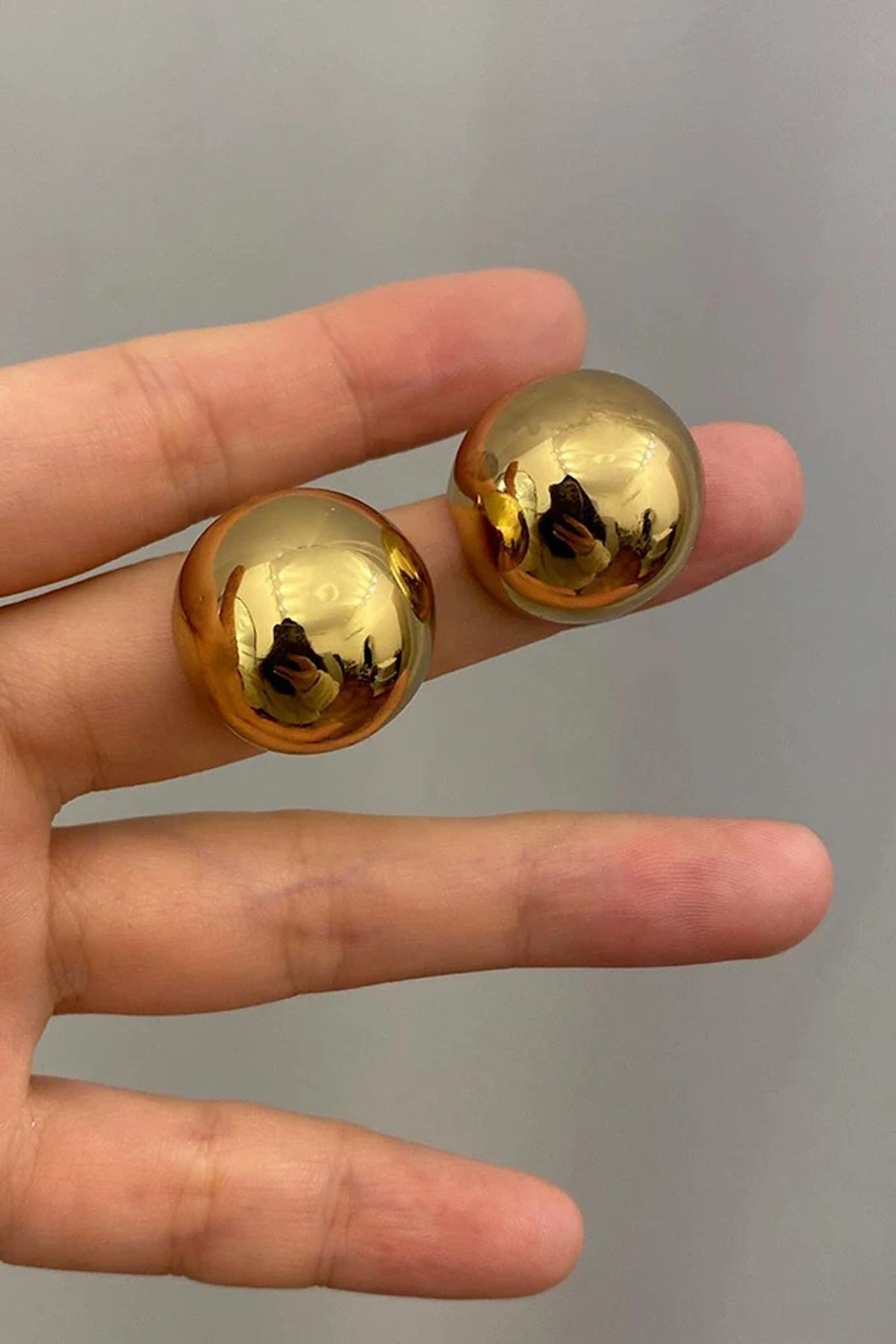 Altın Renk Top Çelik Küpe (Çift)