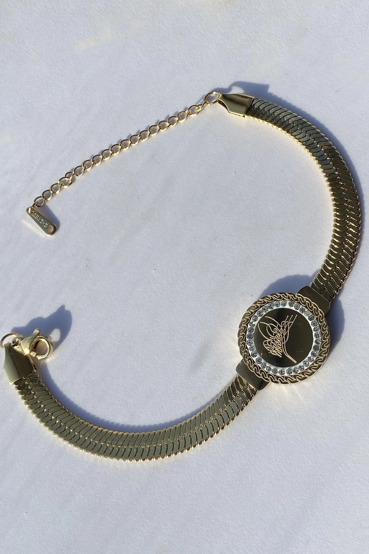 Altın Renk Tuğra Figürlü Çelik Bileklik