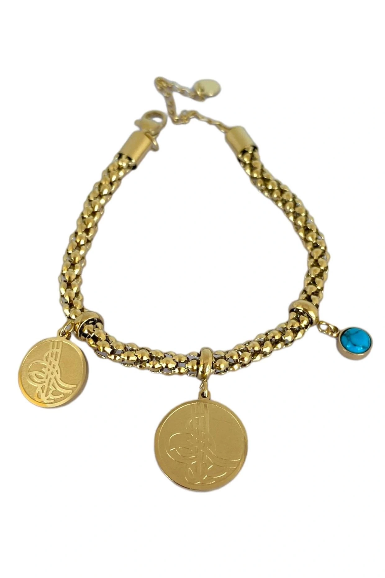 Altın Renk Tuğra Figürlü Çelik Bileklik