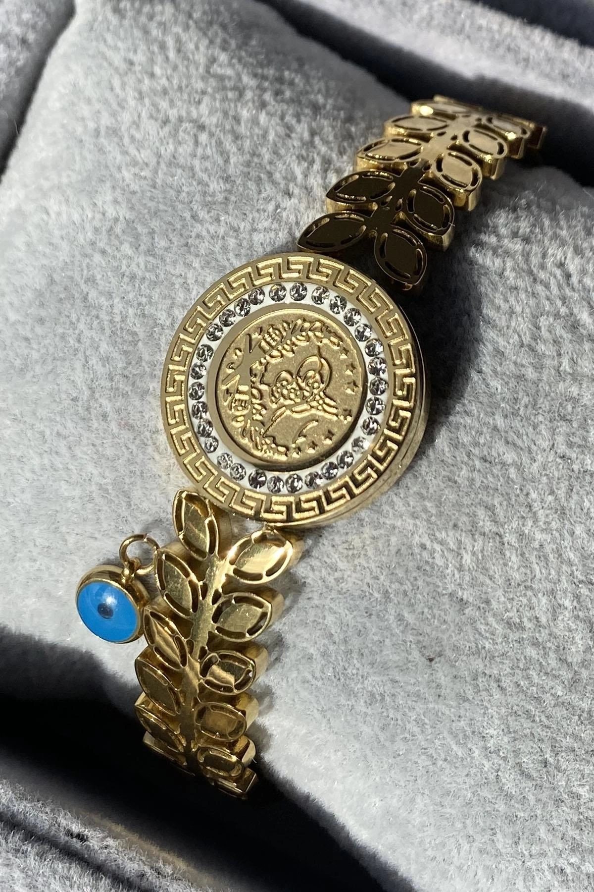Altın Renk Tuğra Figürlü Çelik Kelepçe Bileklik