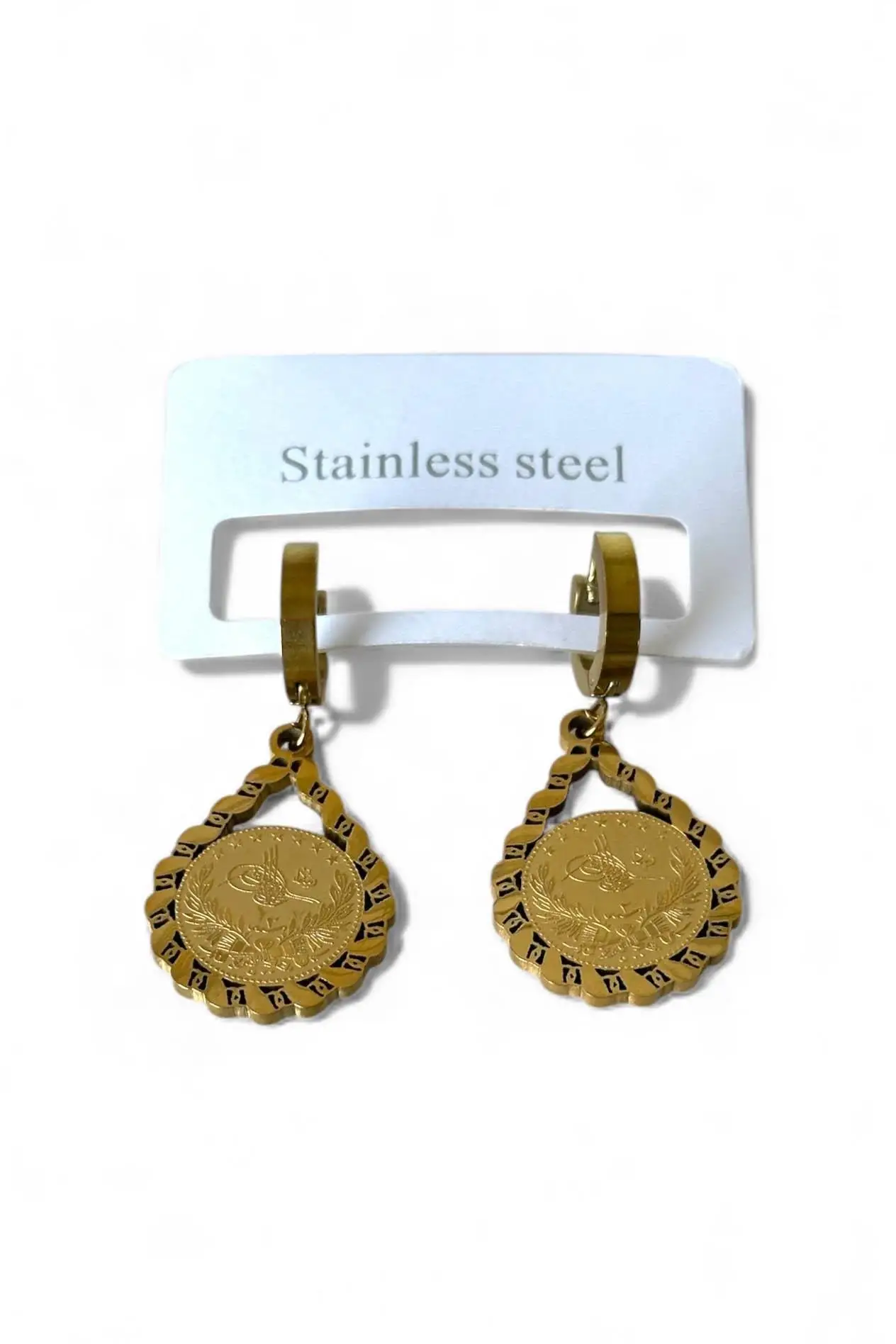 - Zarif tasarımıyla dikkat çeken bu çift küpe, altın rengi detaylarıyla göz alıcı bir görünüm sunar.