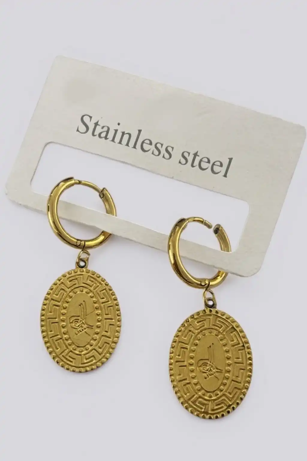 Altın Renk Tuğra Figürlü Çelik Küpe (Çift)