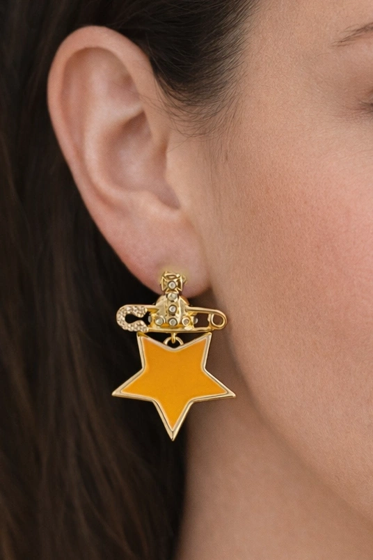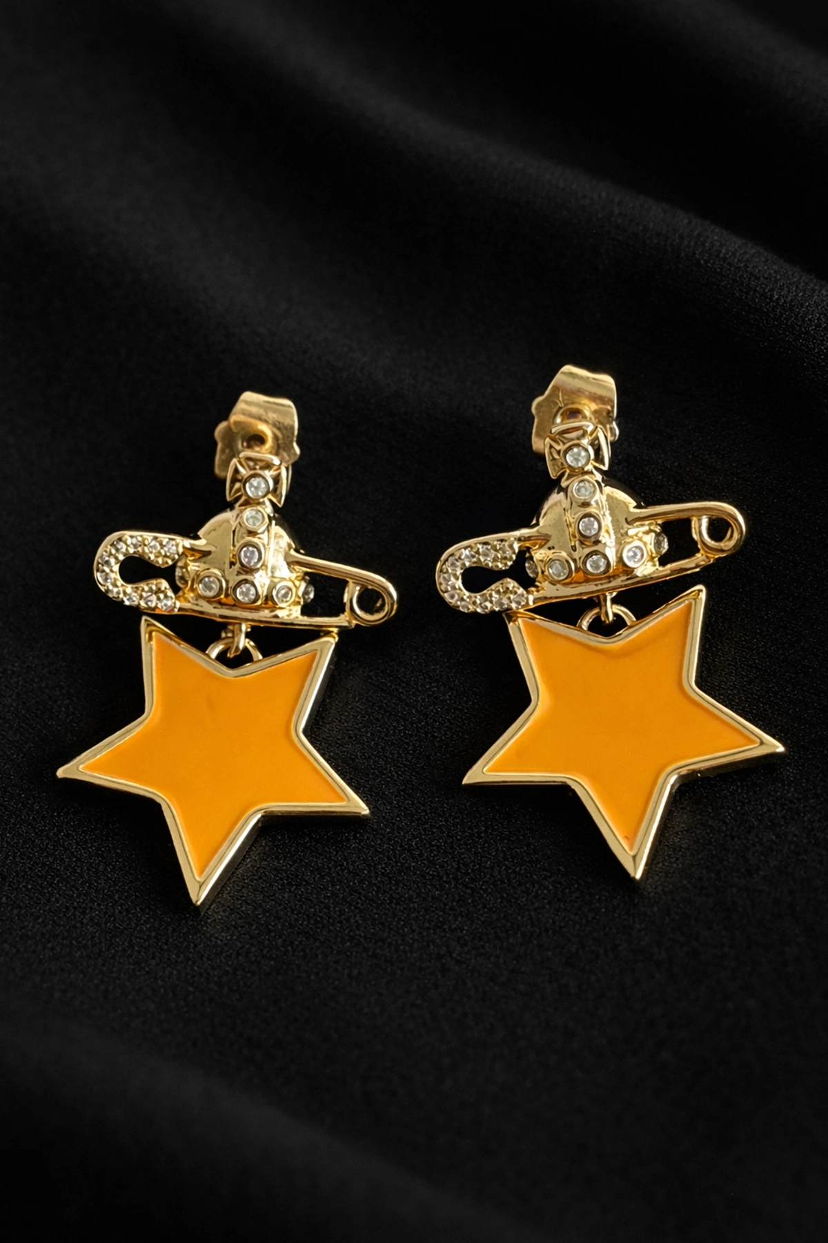 Altın Renk Turuncu Yıldız Figürlü 14K Altın Kaplama TX Küpe (Çift)