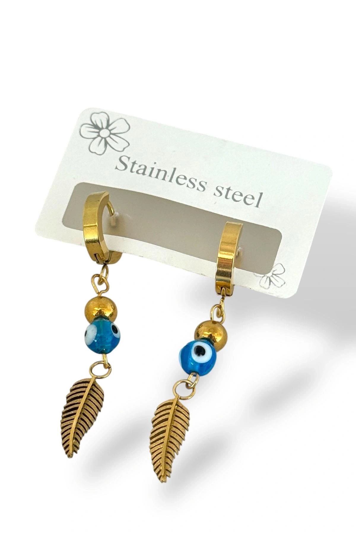 Altın Renk Tüy Figürlü Çelik Küpe (Çift)