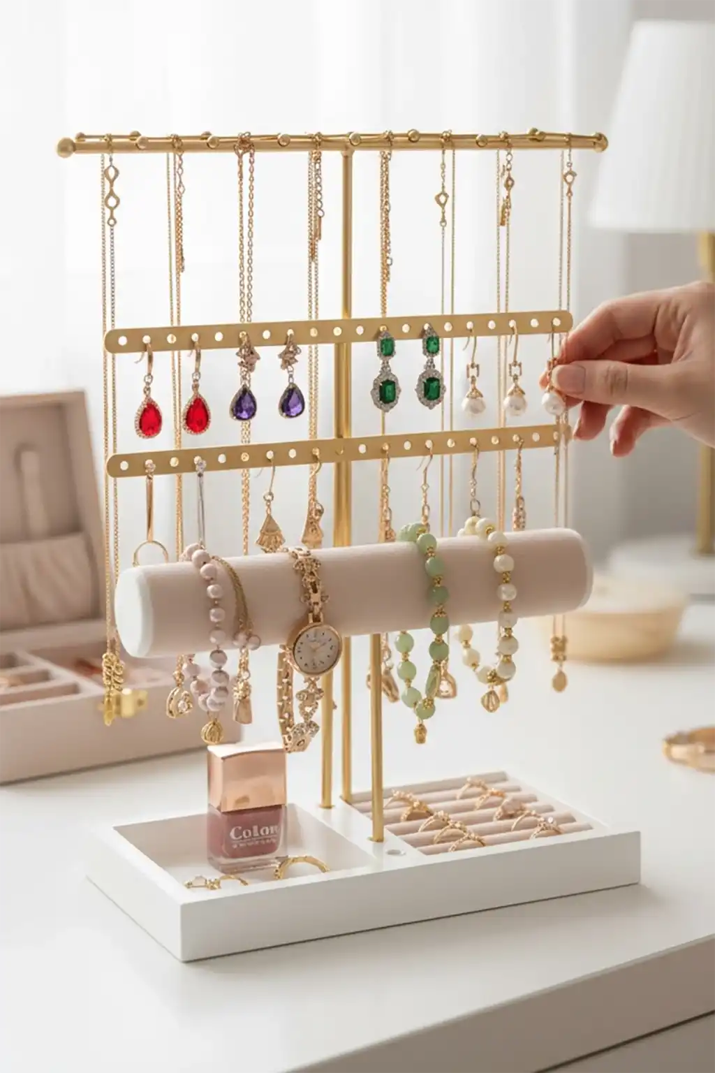 Saatlerinizi bilekliklerinizi ve takılarınızı rahatça organize edebilirsiniz.