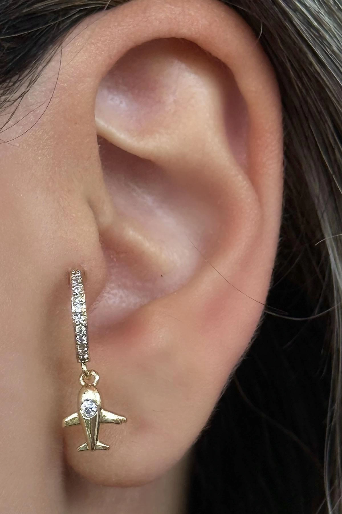 Altın Renk Uçak Figürlü Çelik Tragus/Kıkırdak Küpe/Piercing (Tek)