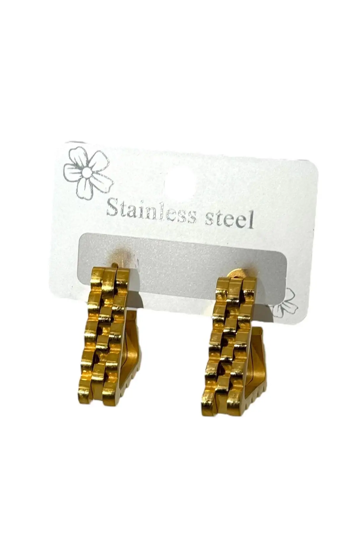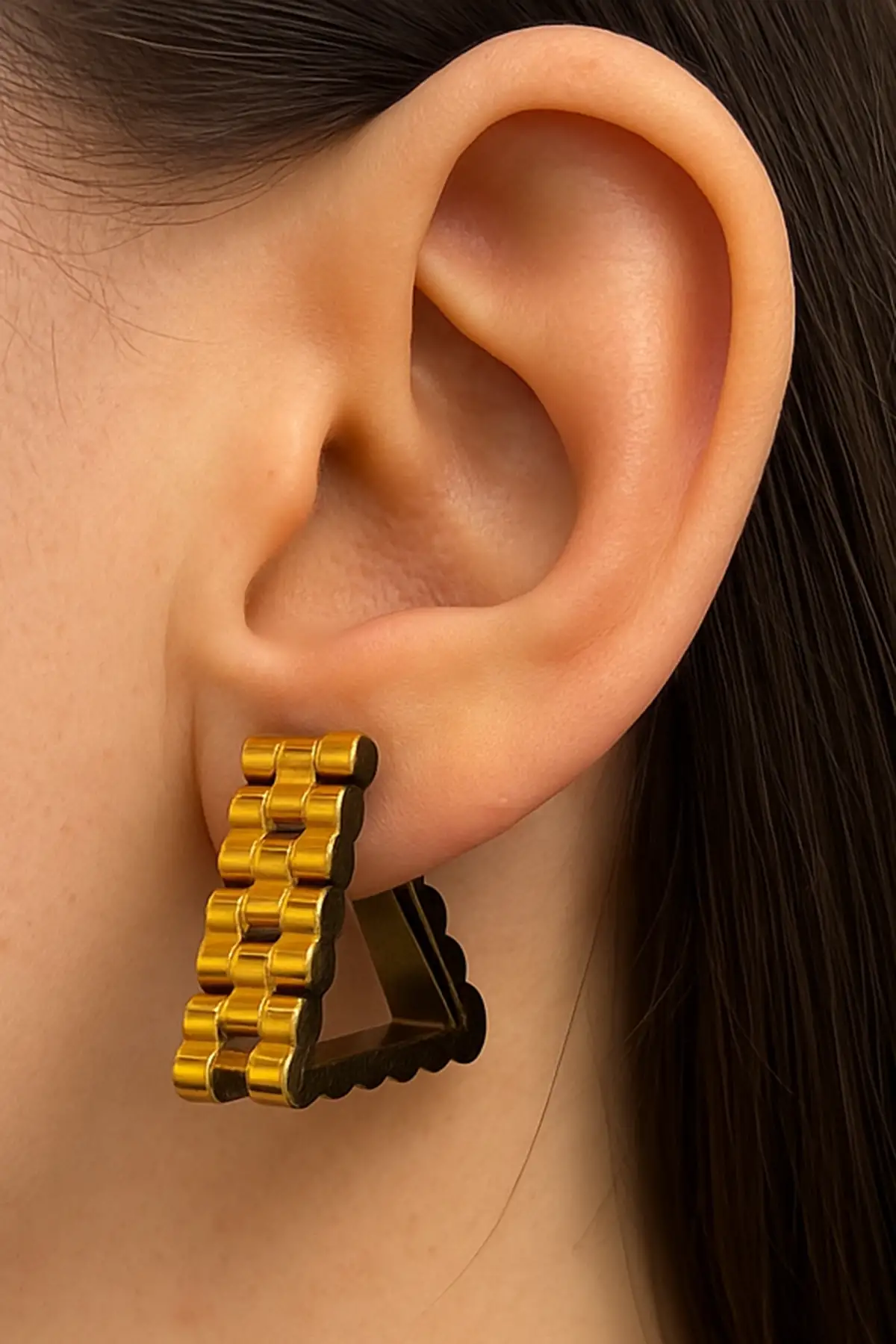 - Zarif tasarımıyla dikkat çeken bu çift küpe, altın rengi detaylarıyla göz alıcı bir görünüm sunar.