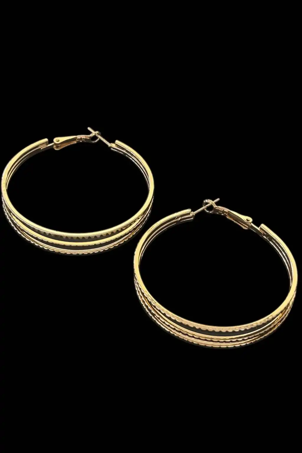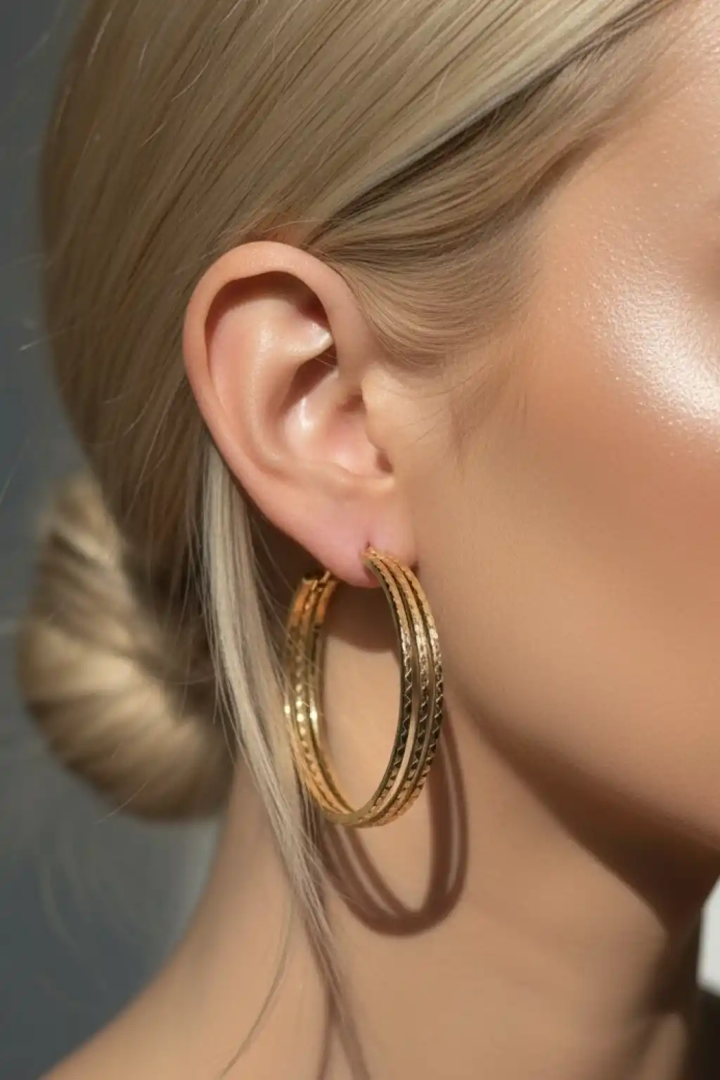 Altın Renk Üçlü Görünümlü Halka Küpe (Çift)