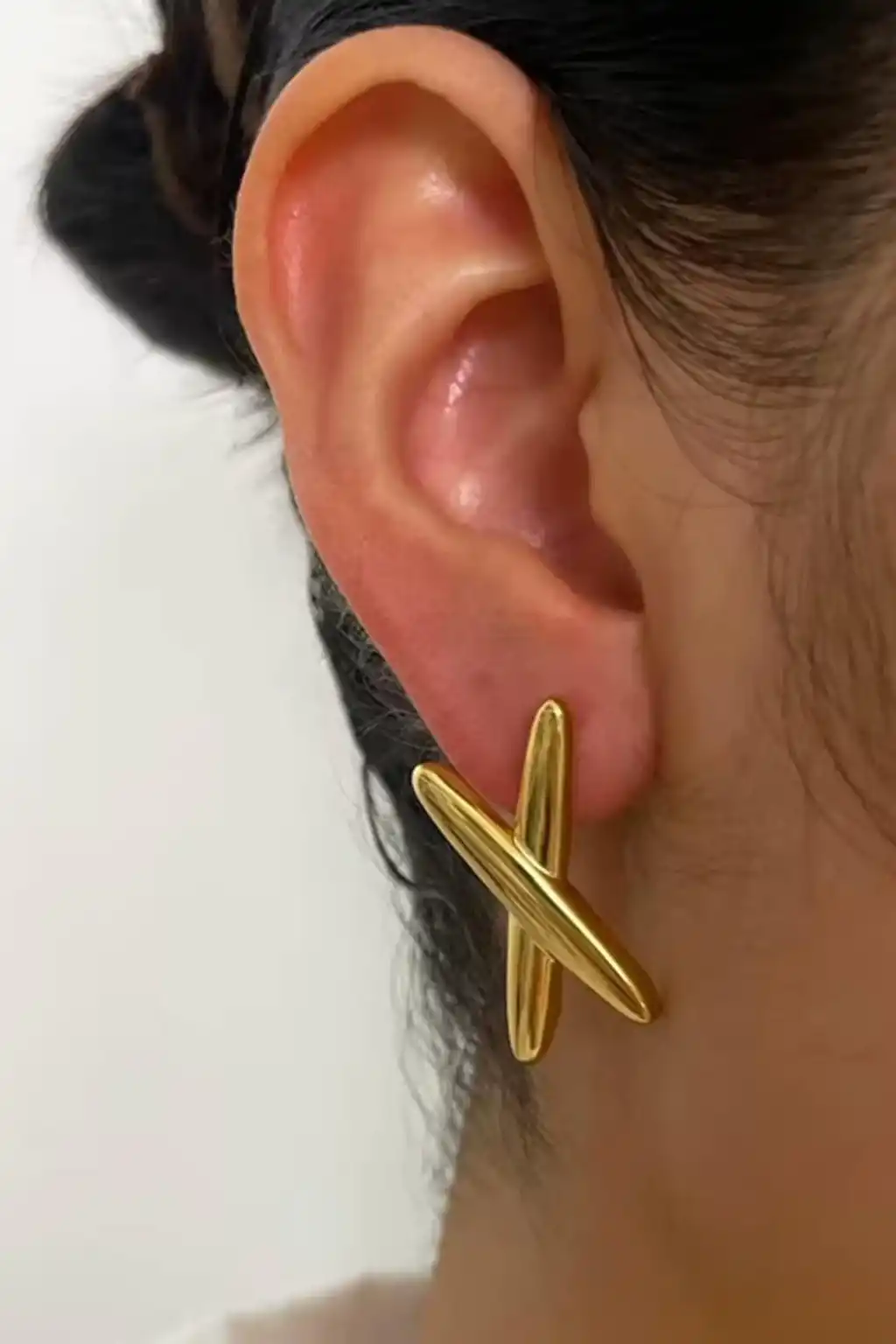 Altın Renk X Figürlü Çelik Küpe (Çift)