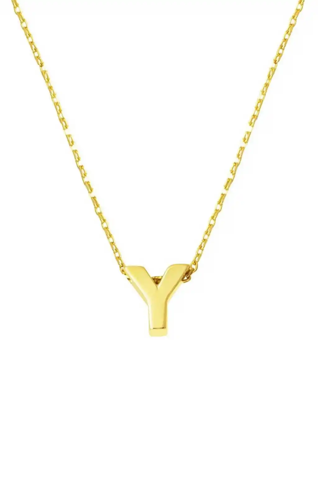 Altın Renk Y Harfli Taş Detaylı Çelik Kolye