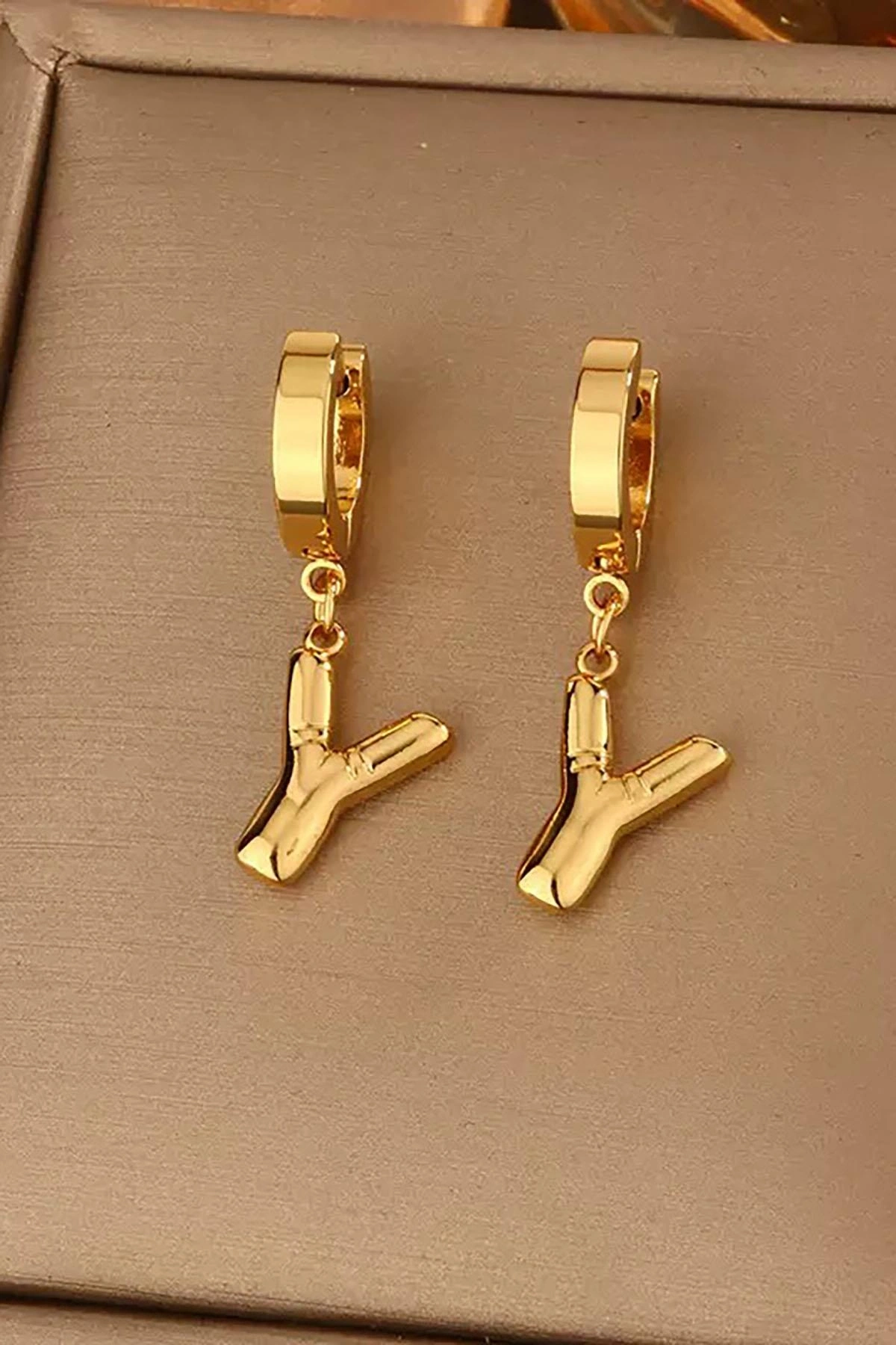 Altın Renk Y Harf Çelik Küpe (Çift)
