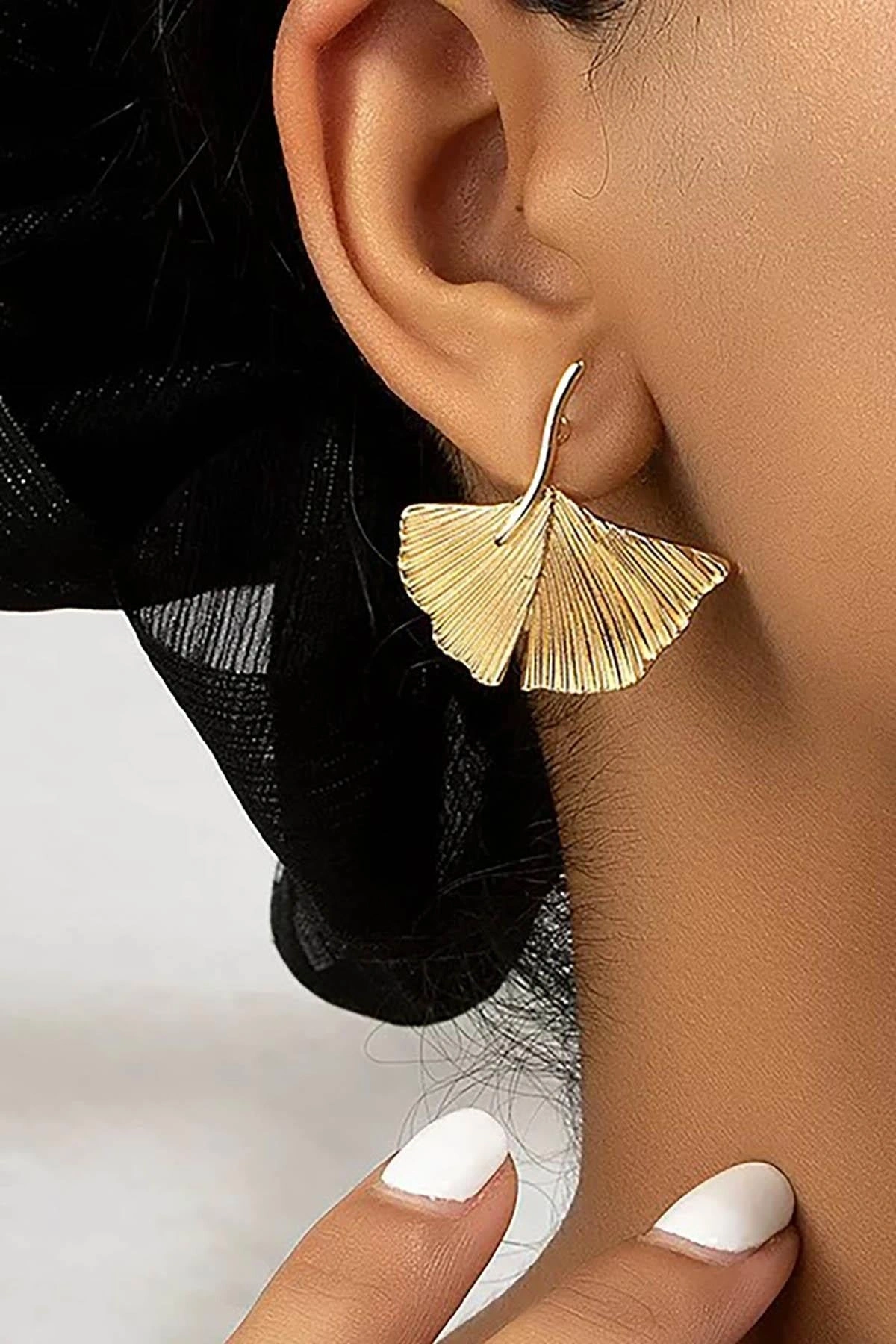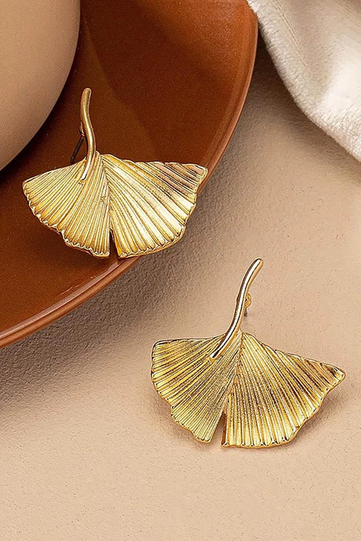Altın Renk Yaprak Figürlü Çelik Küpe (Çift)