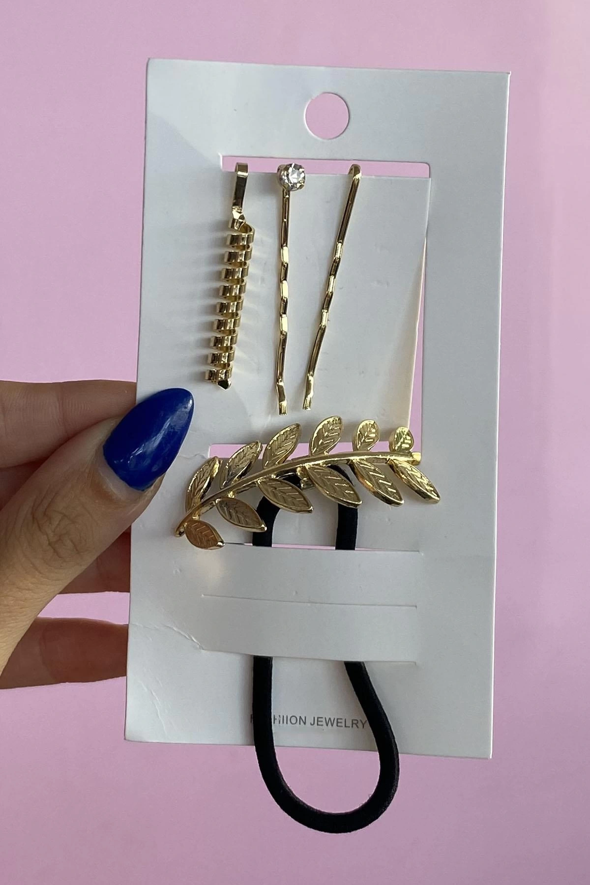 Altın Renk Yaprak Figürlü Metal Toka Ve Tel Toka Set