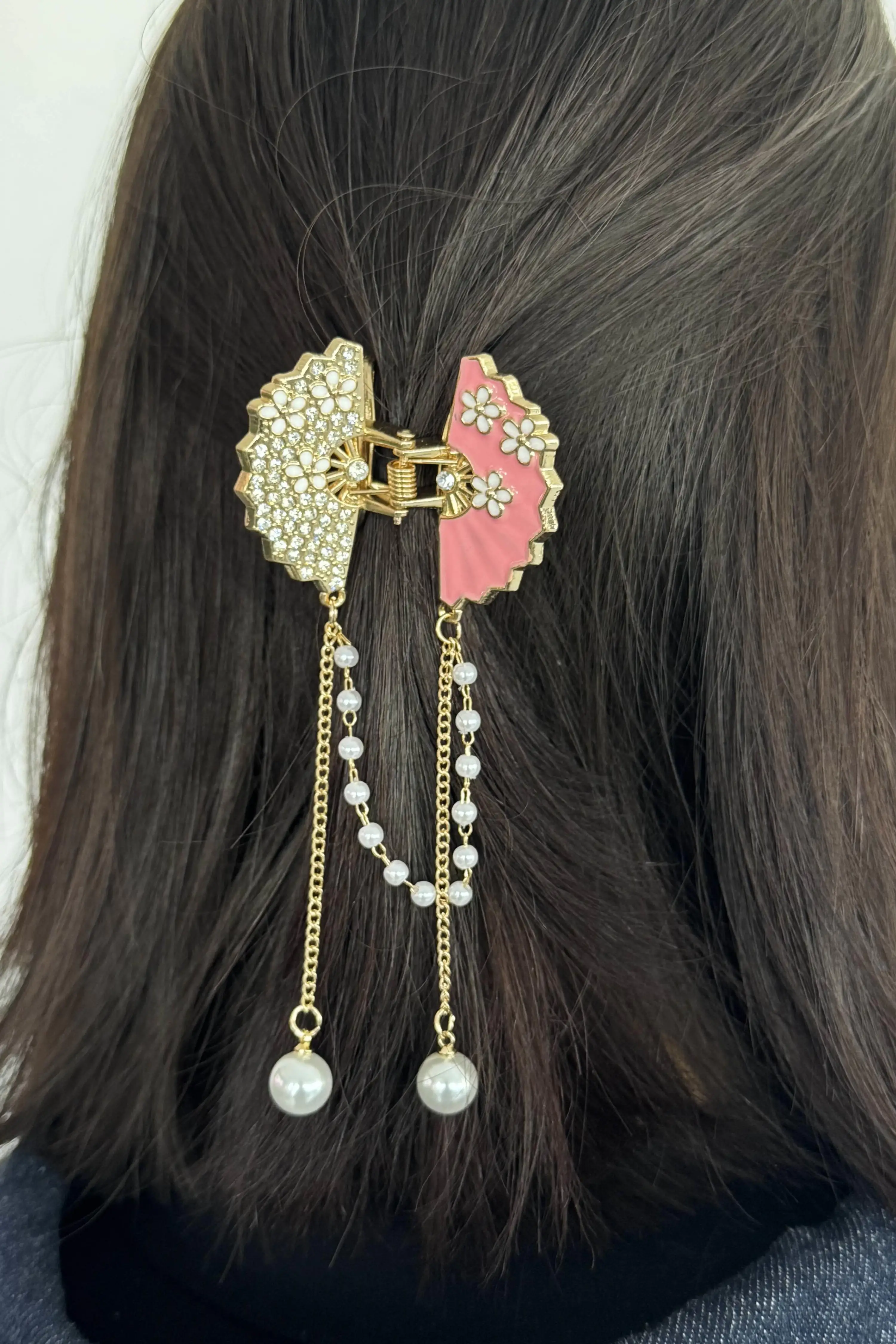 Altın Renk Yelpaze Figürlü Taş Ve İnci Detaylı Metal Mandal Toka