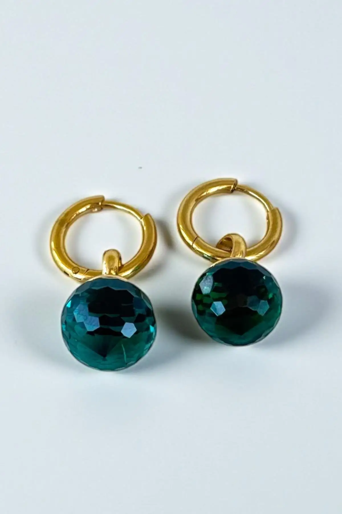 Altın Renk Yeşil Taş Detaylı Çelik Küpe (Çift)