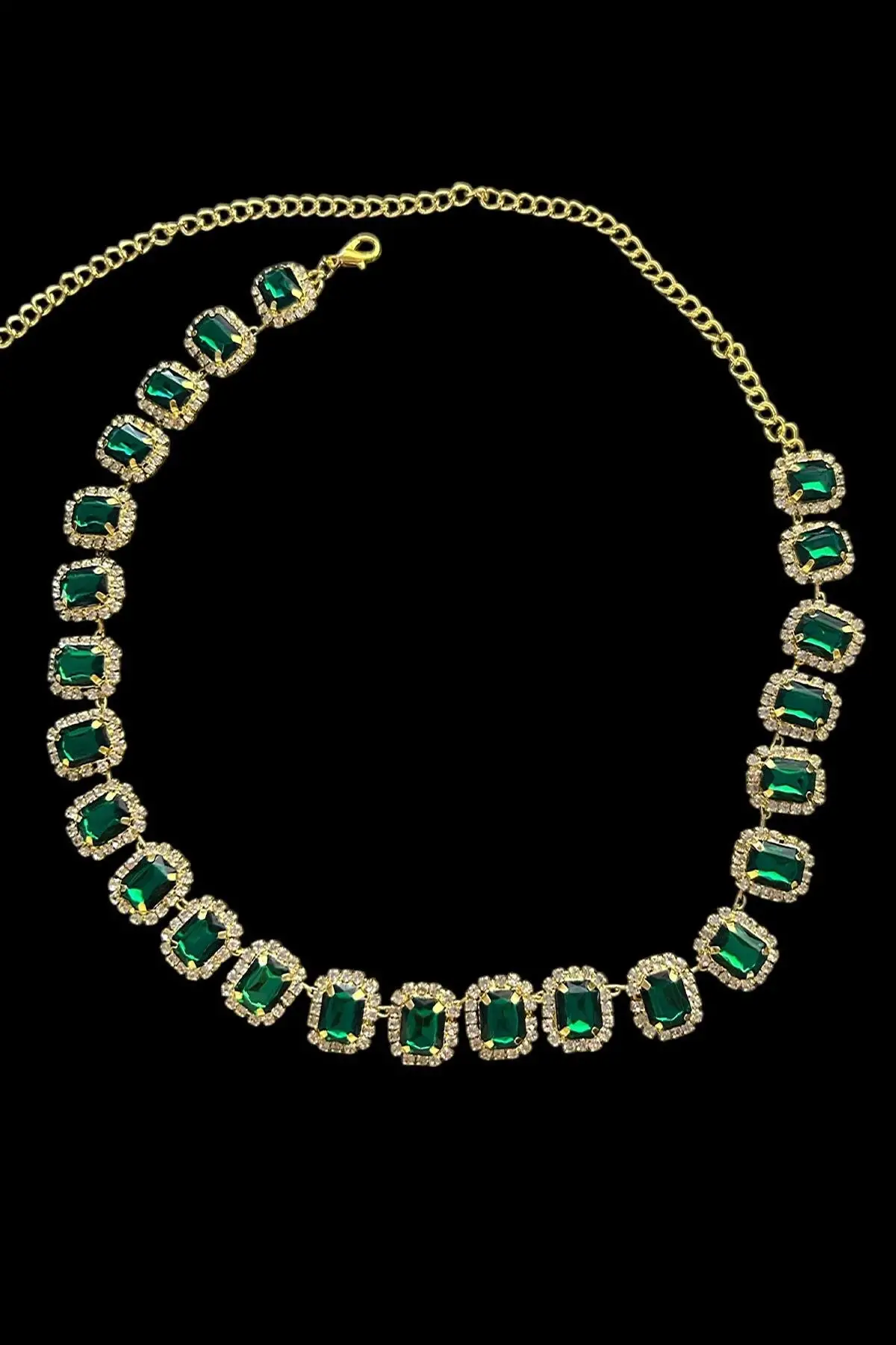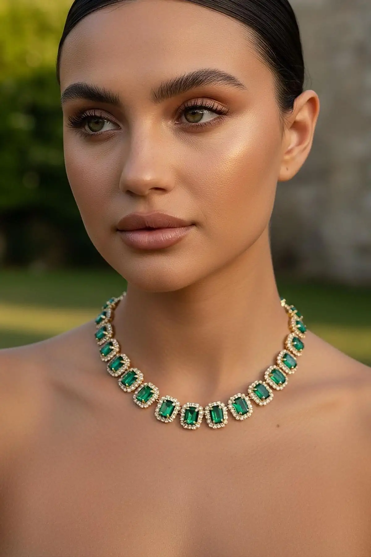 Altın Renk Yeşil Taş Detaylı Tasarım Abiye Kolye