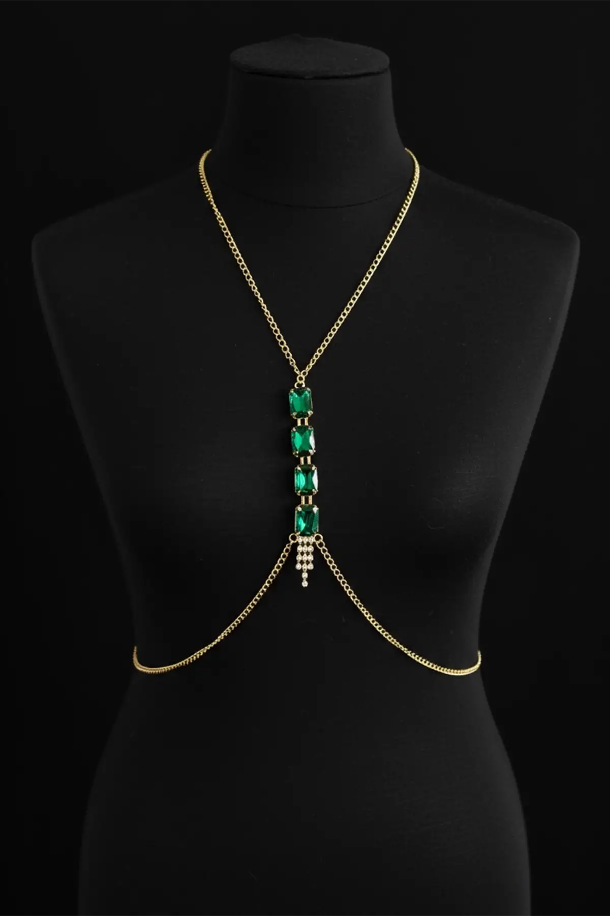Altın Renk Yeşil Taş Detaylı Vücut Aksesuarı