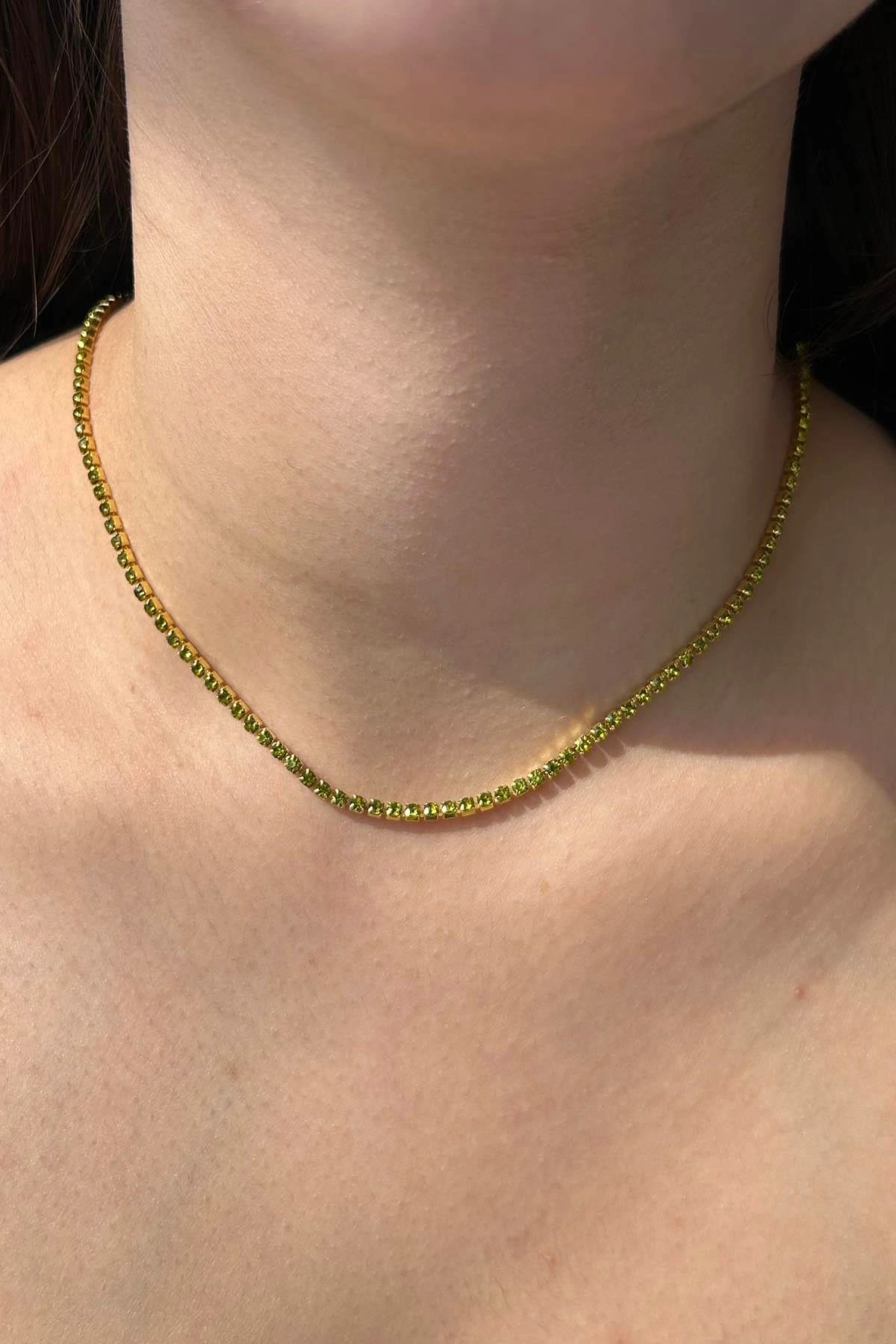Altın Renk Yeşil Taşlı Su Yolu Kolye